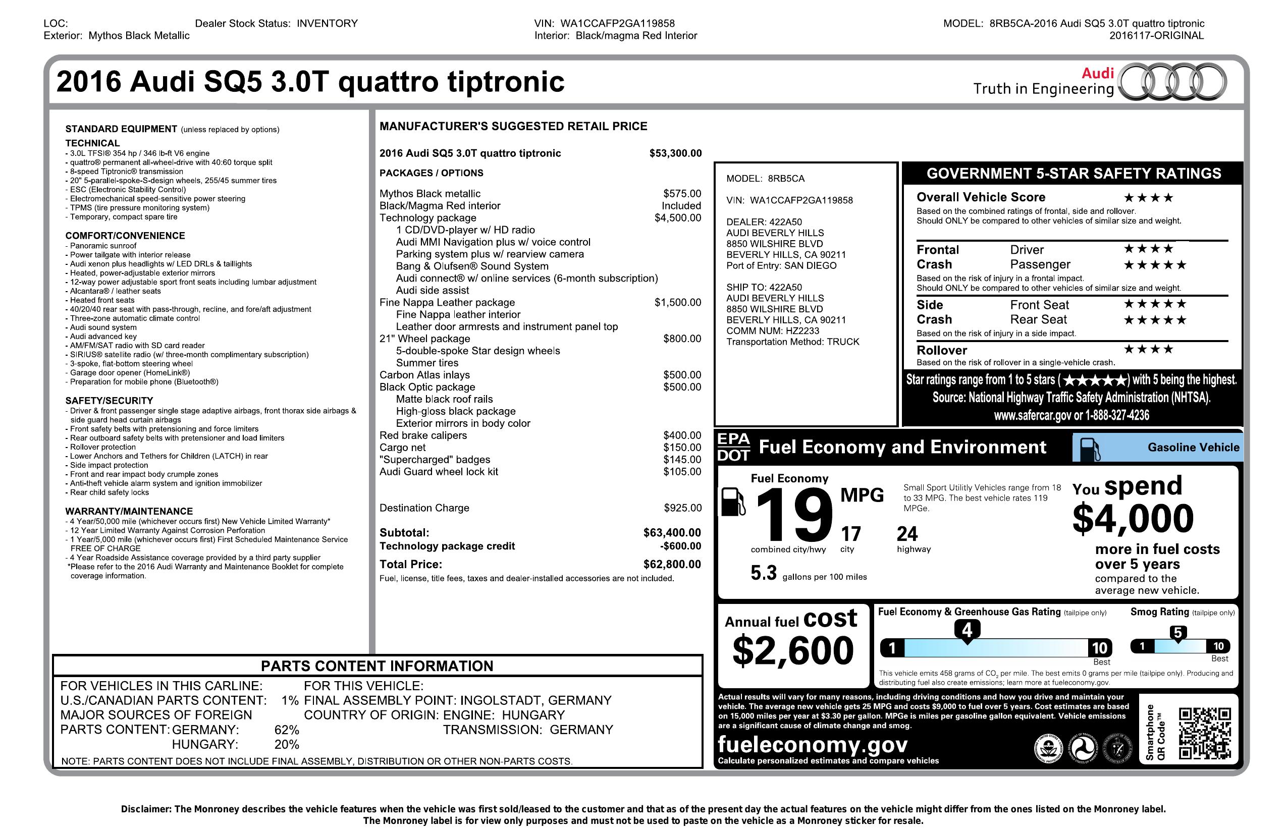 2016 Audi Sq5 Quattro 4dr 3.0 T Premium Plus