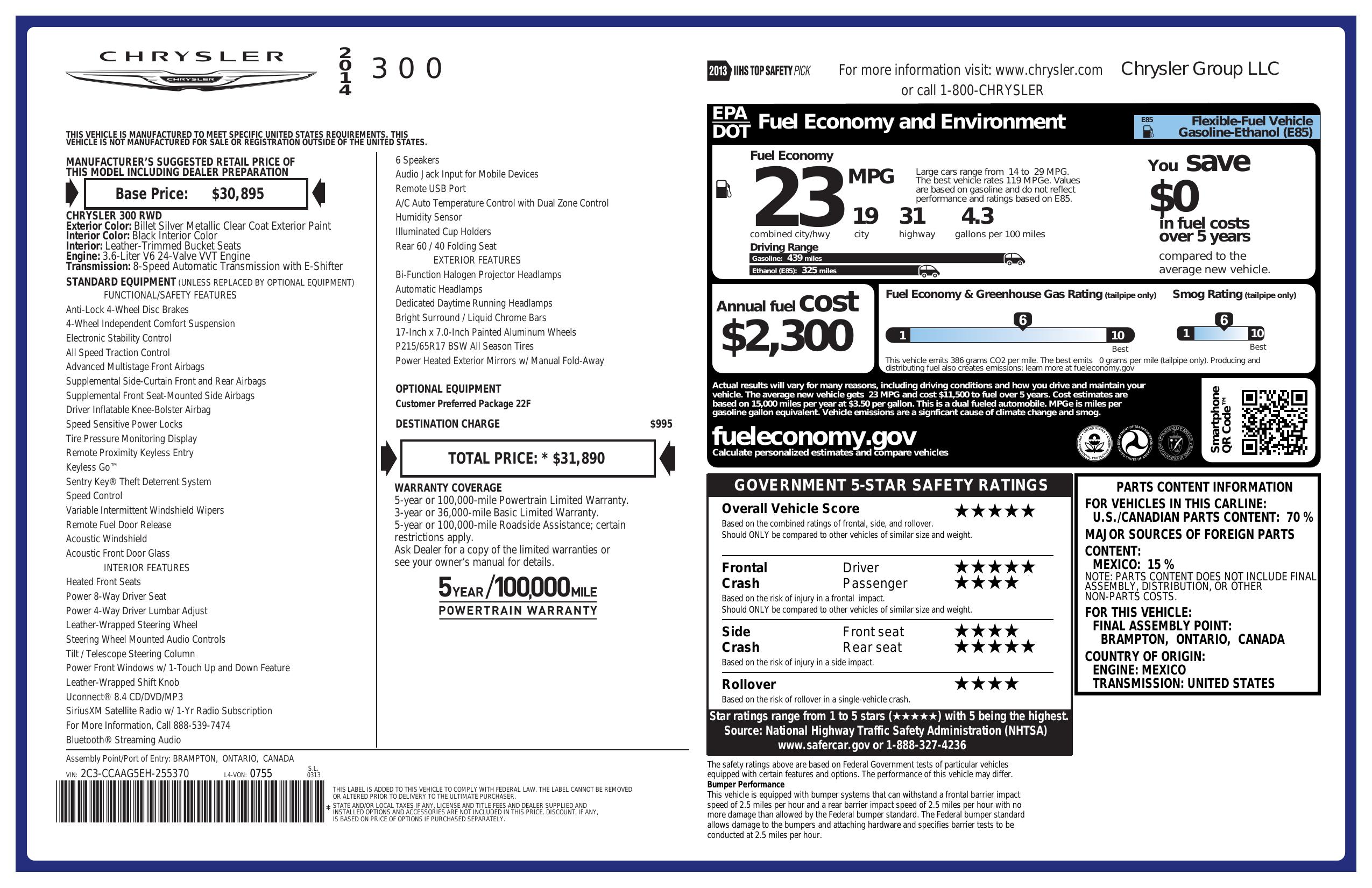 2014 Chrysler 300 4dr Sdn Rwd