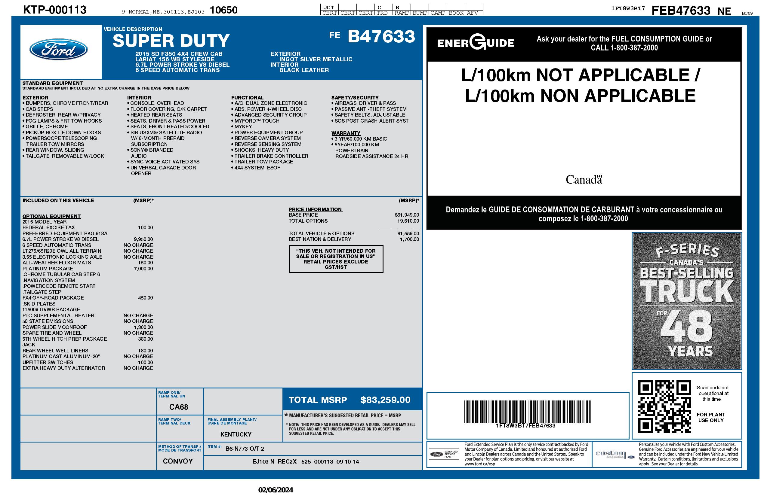 2015 Ford Super Duty F 350 Srw 4 Wd Crew Cab