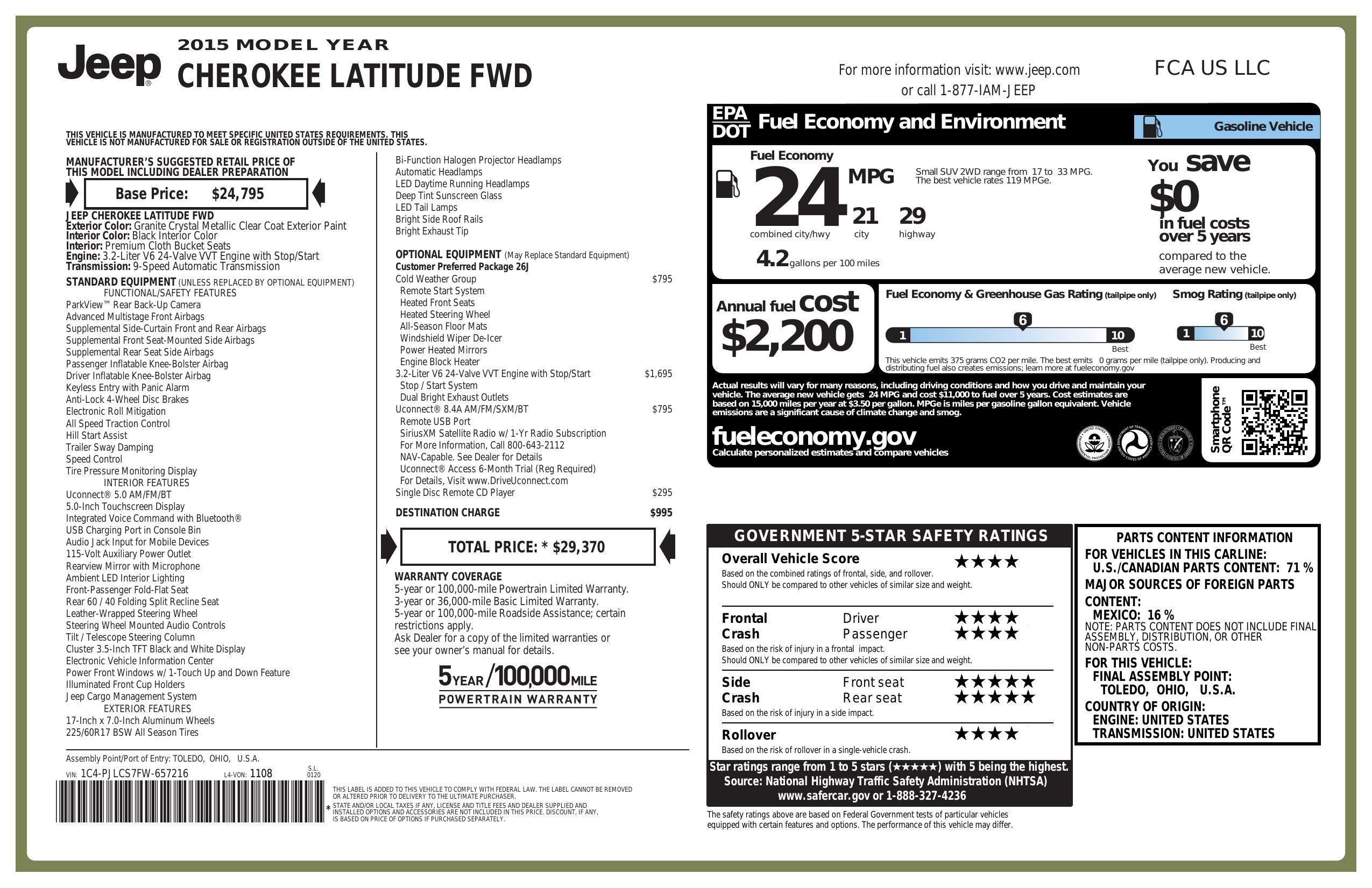 2015 Jeep Cherokee Fwd 4dr Latitude