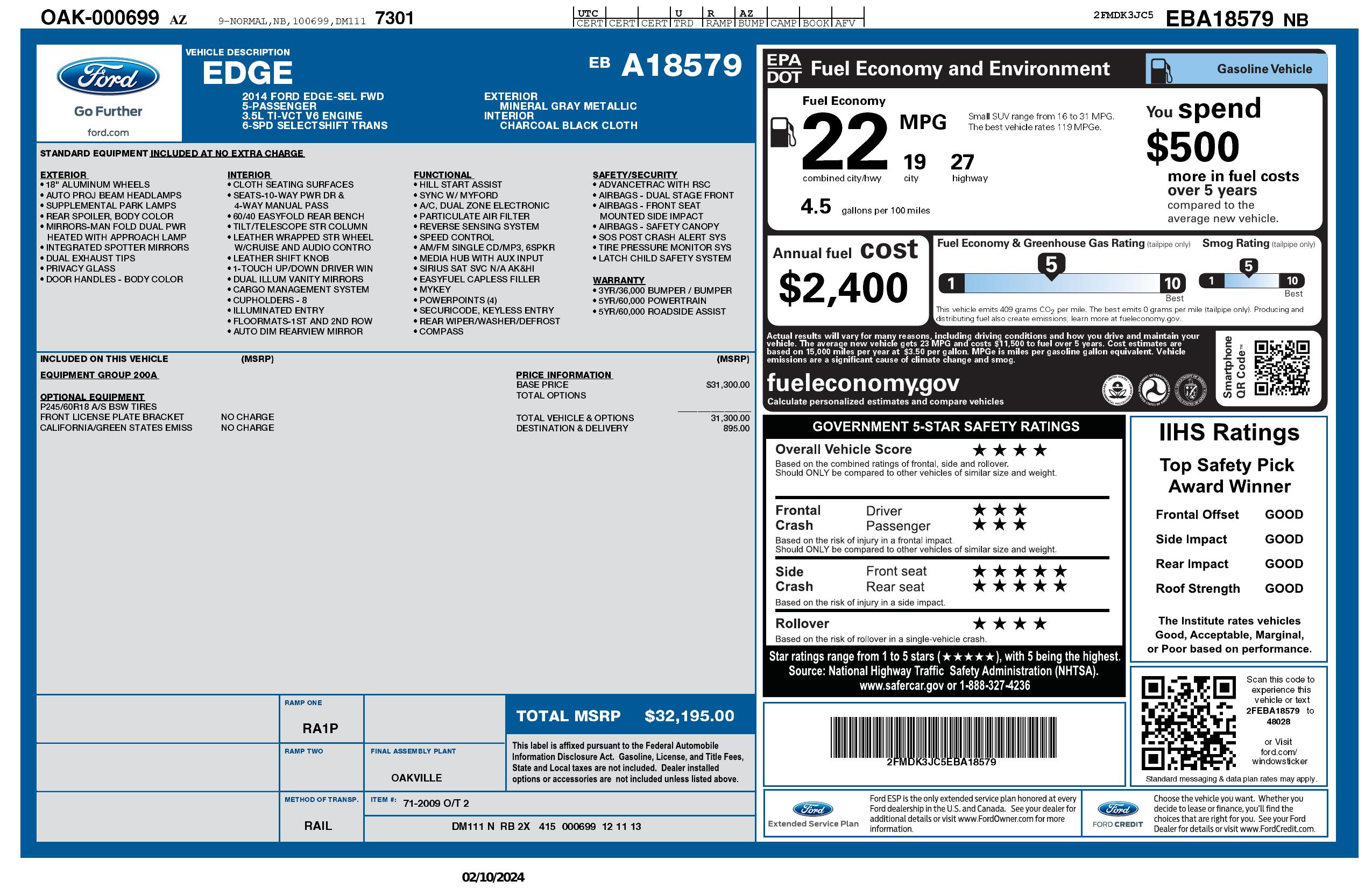 2014 Ford Edge 4dr Sel Fwd