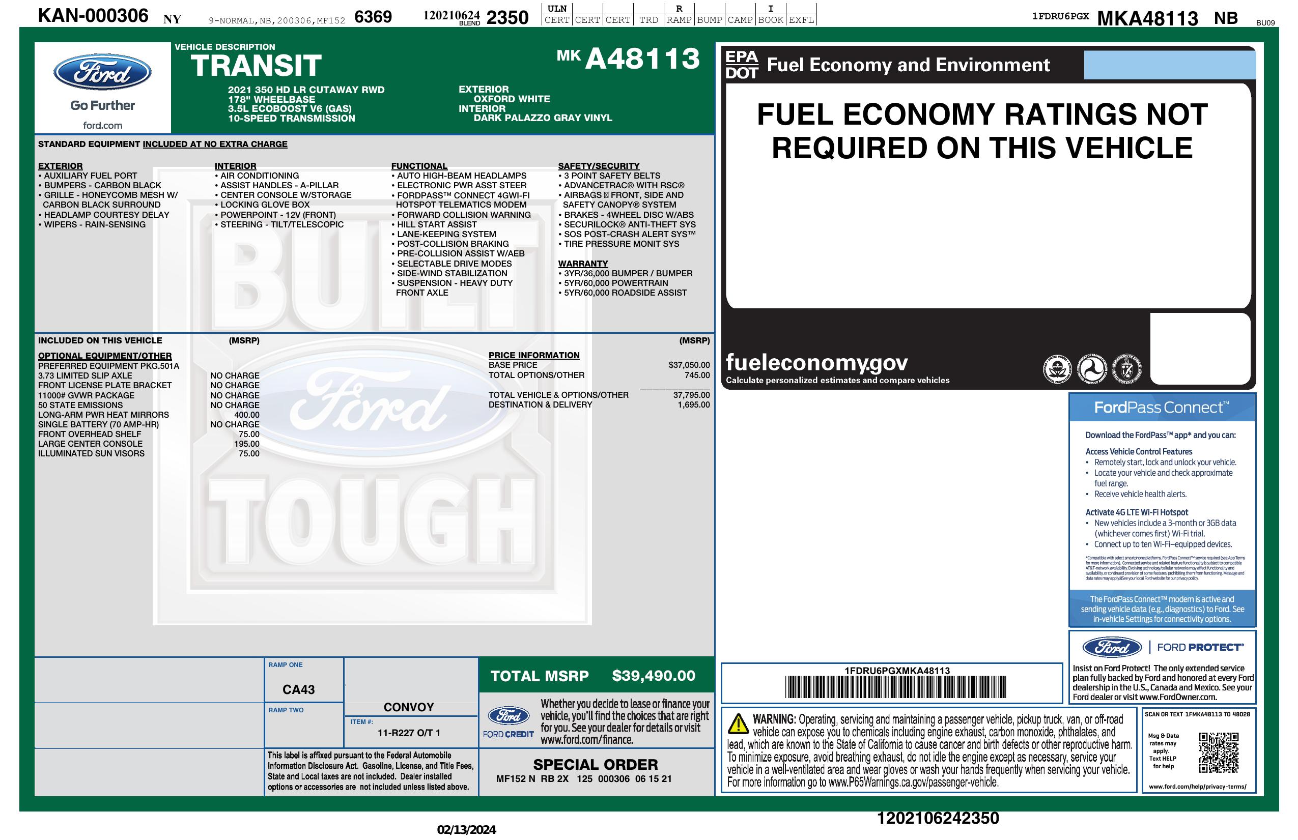 2021 Ford Transit Cutaway T 350 Rwd Drw Wb 11000 Gvwr