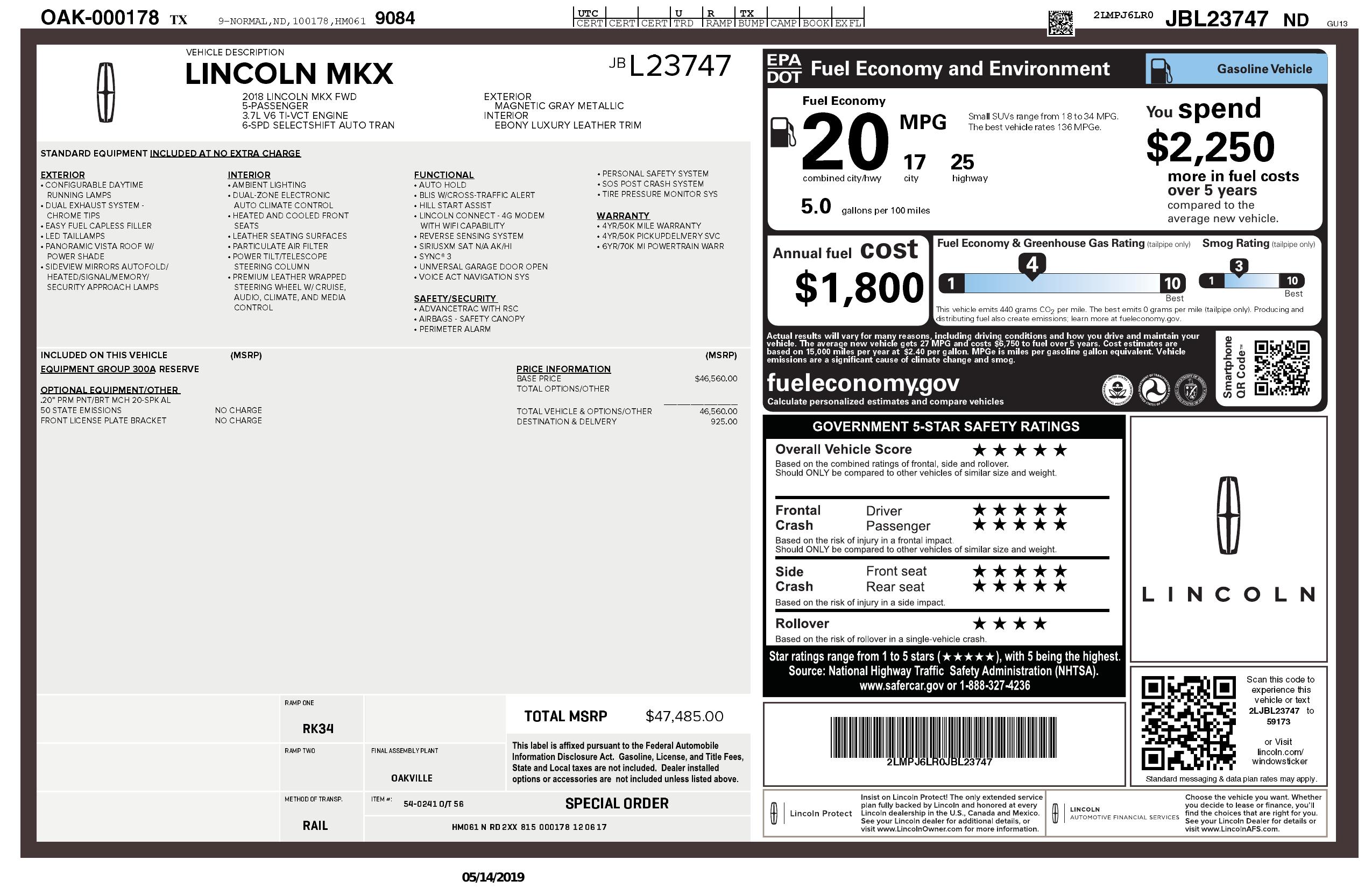 2018 Lincoln Mkx Reserve Fwd