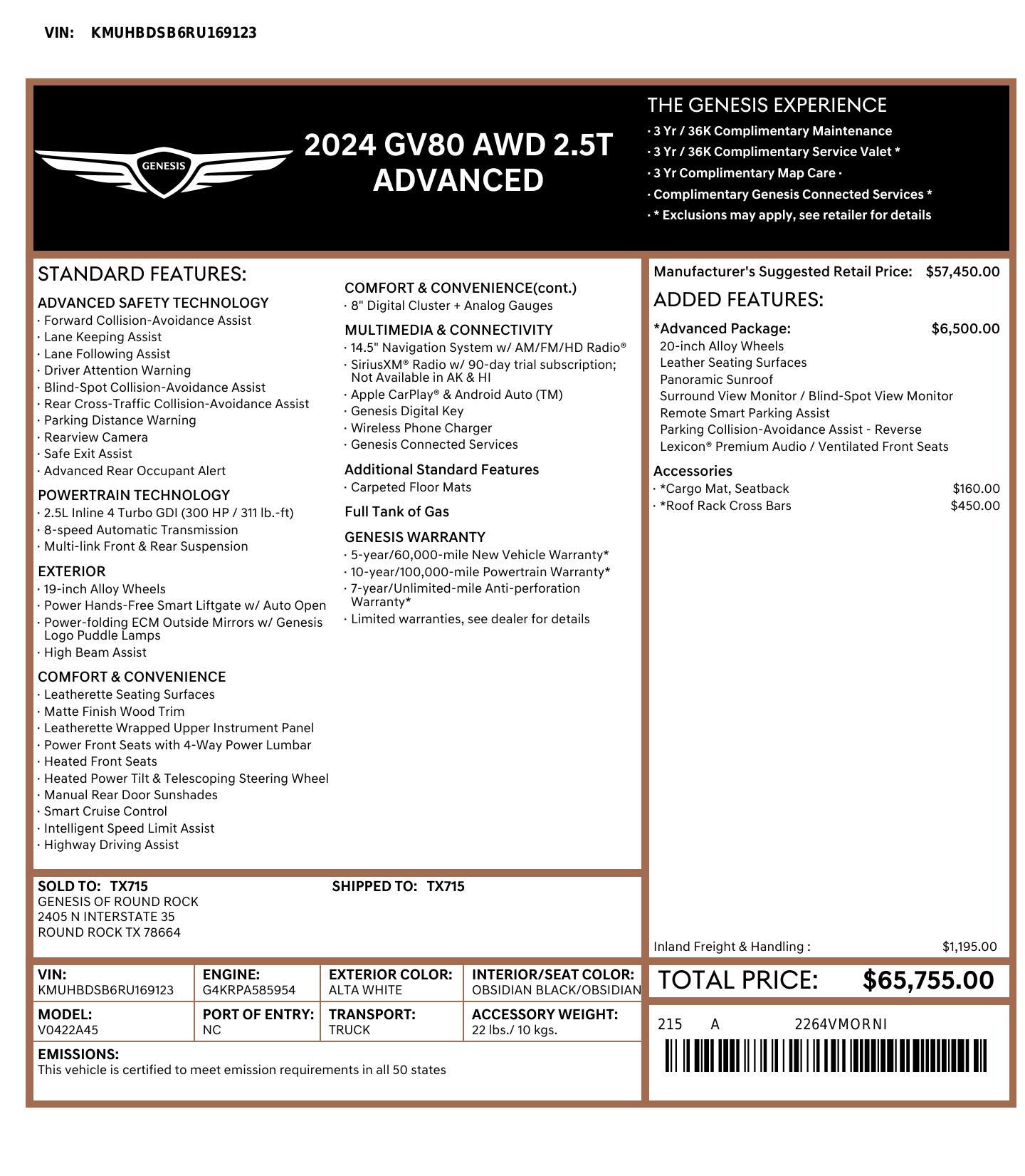 2024 Genesis Gv80 2.5 T Awd