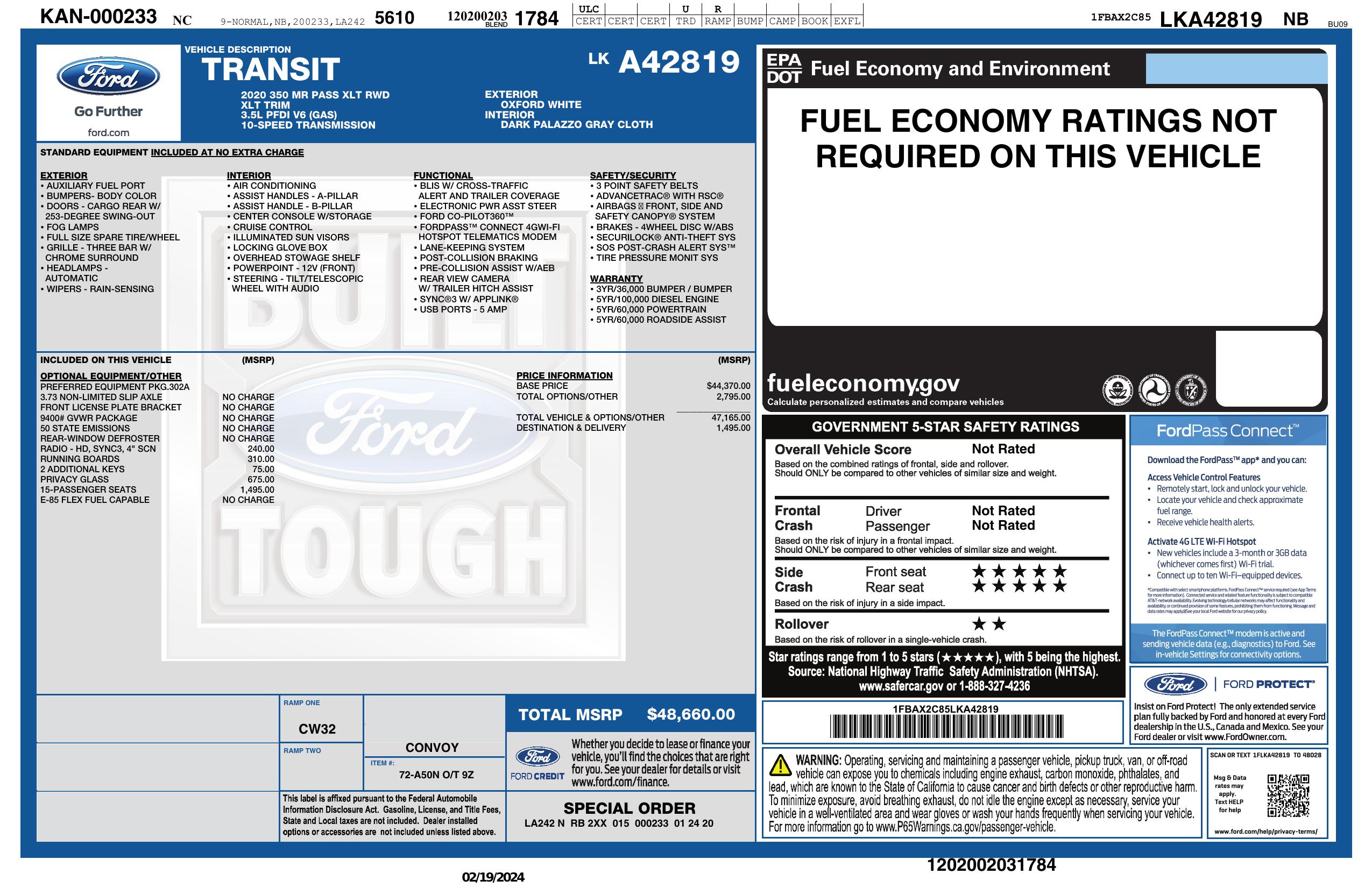 2020 Ford Transit Passenger Wagon T 350 148" Med Roof Rwd