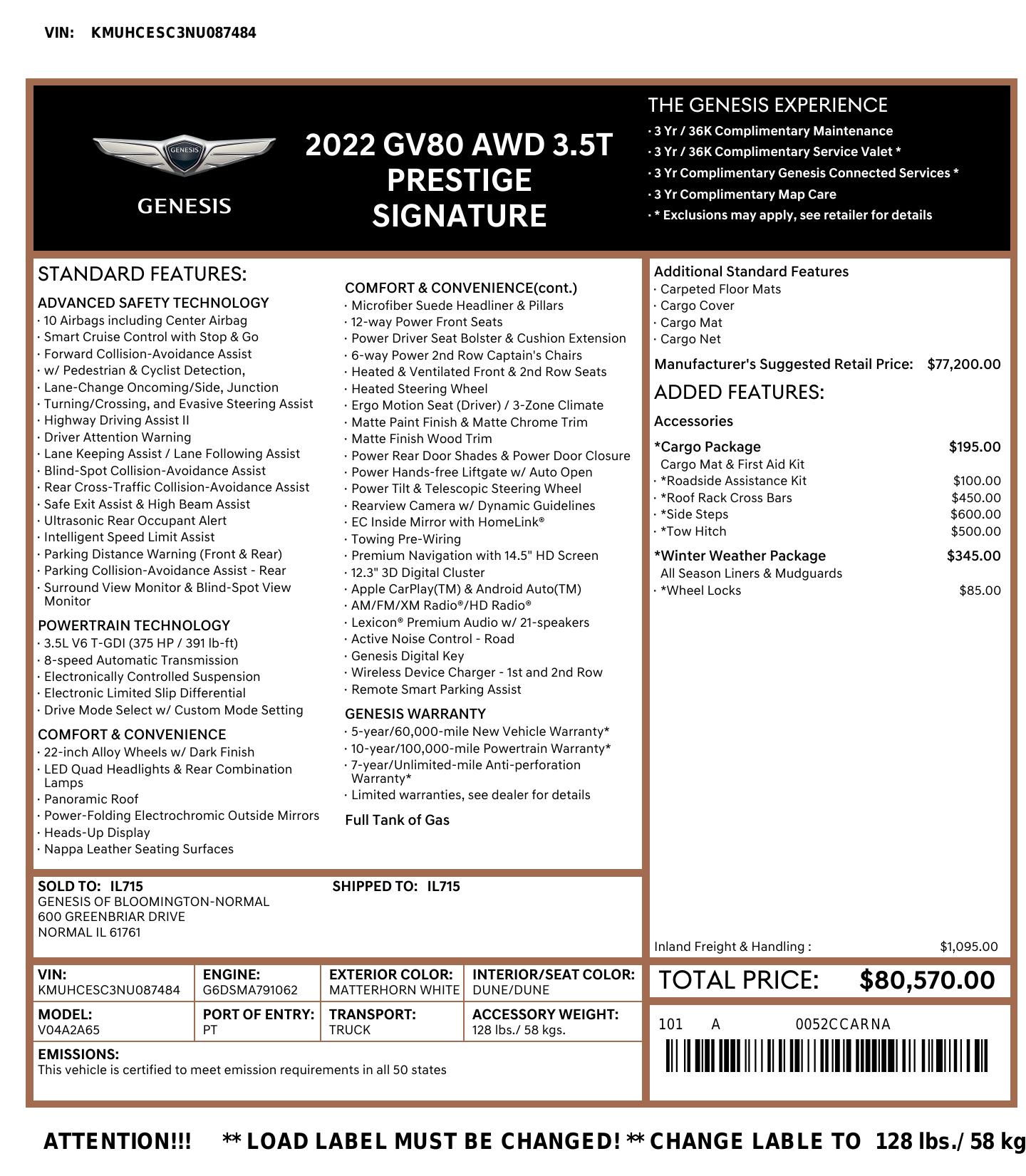 2022 Genesis Gv80 3.5 T Prestige Signature Awd *Ltd Avail*