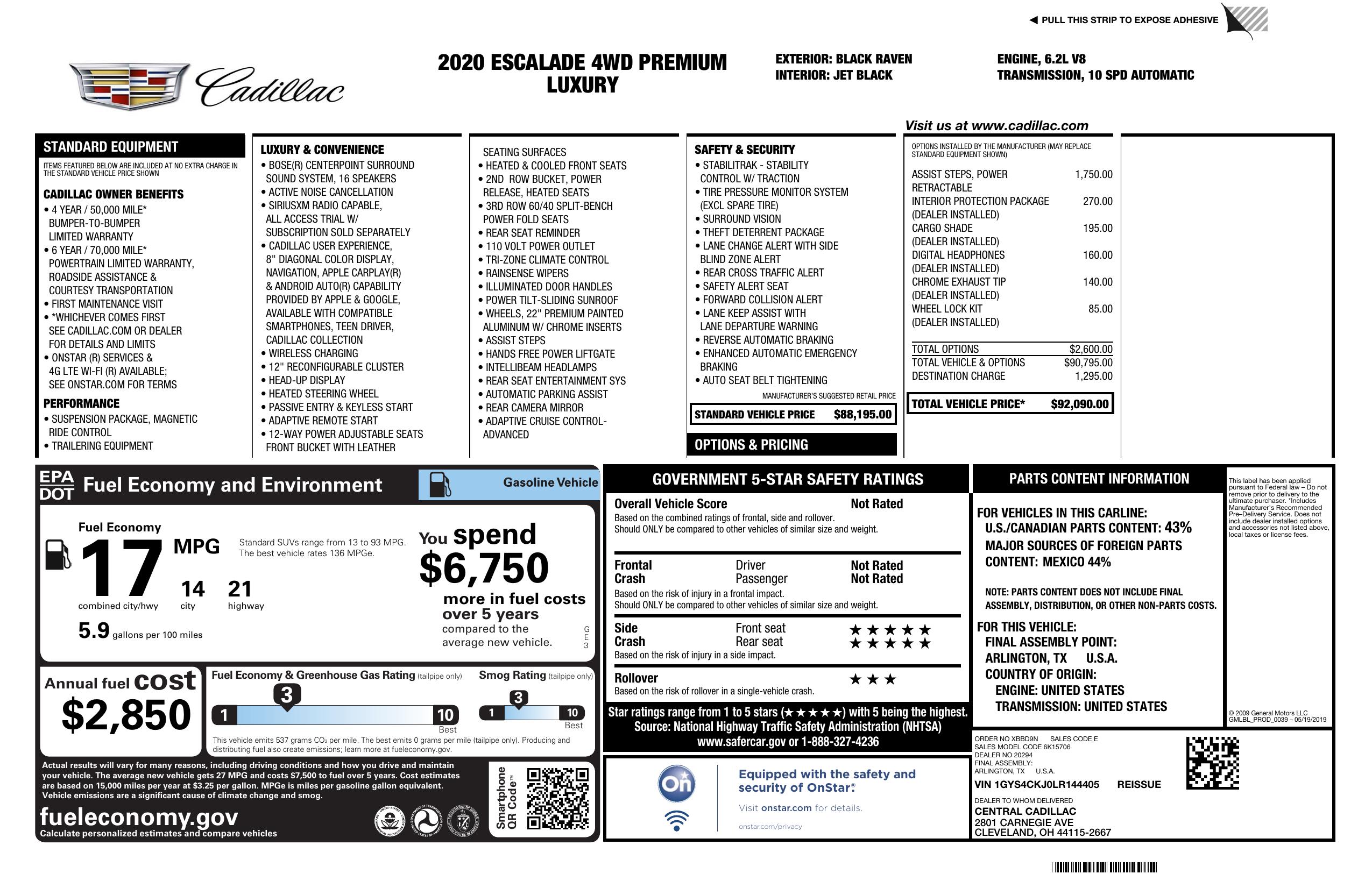 2020 Cadillac Escalade 4 Wd 4dr Premium Luxury