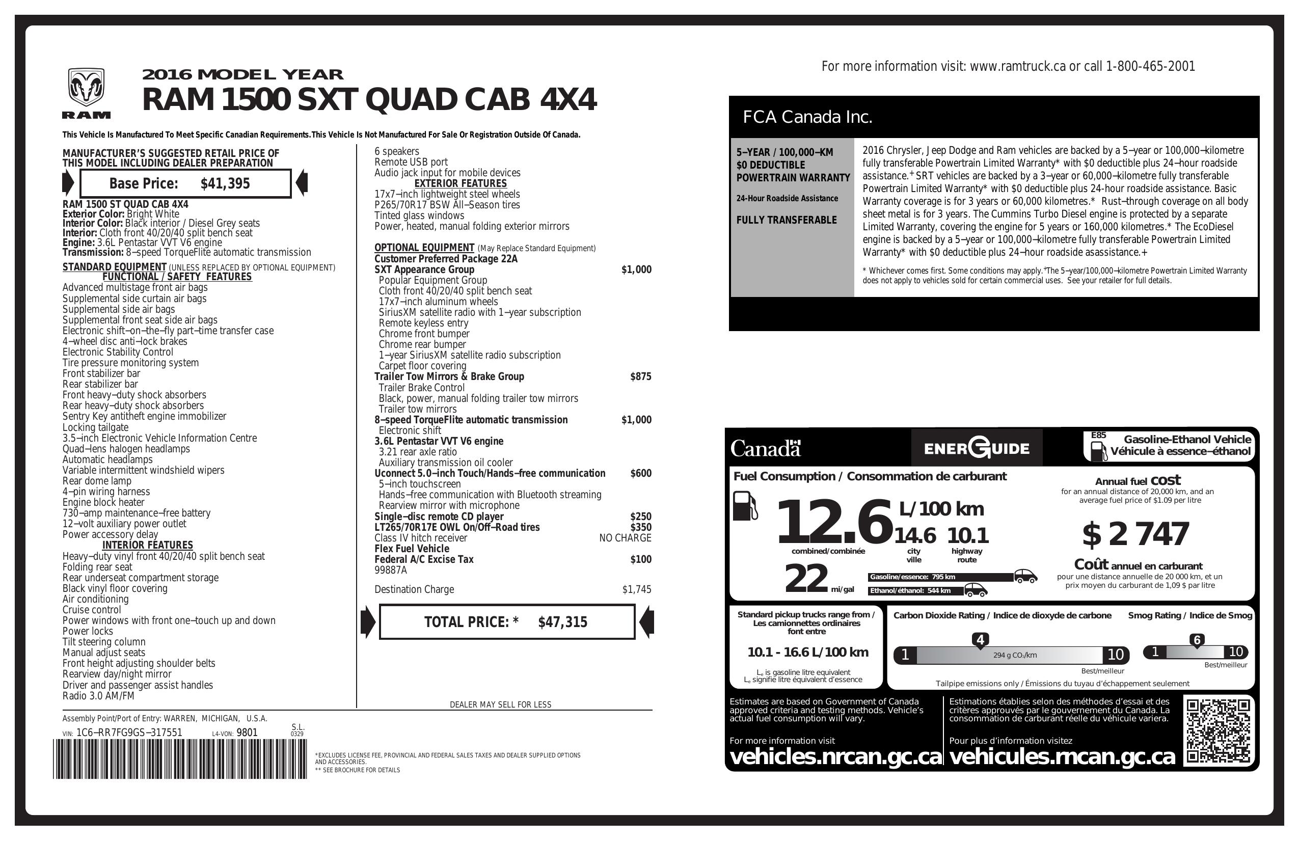 2016 Ram 1500 4 Wd Quad Cab 140.5" St