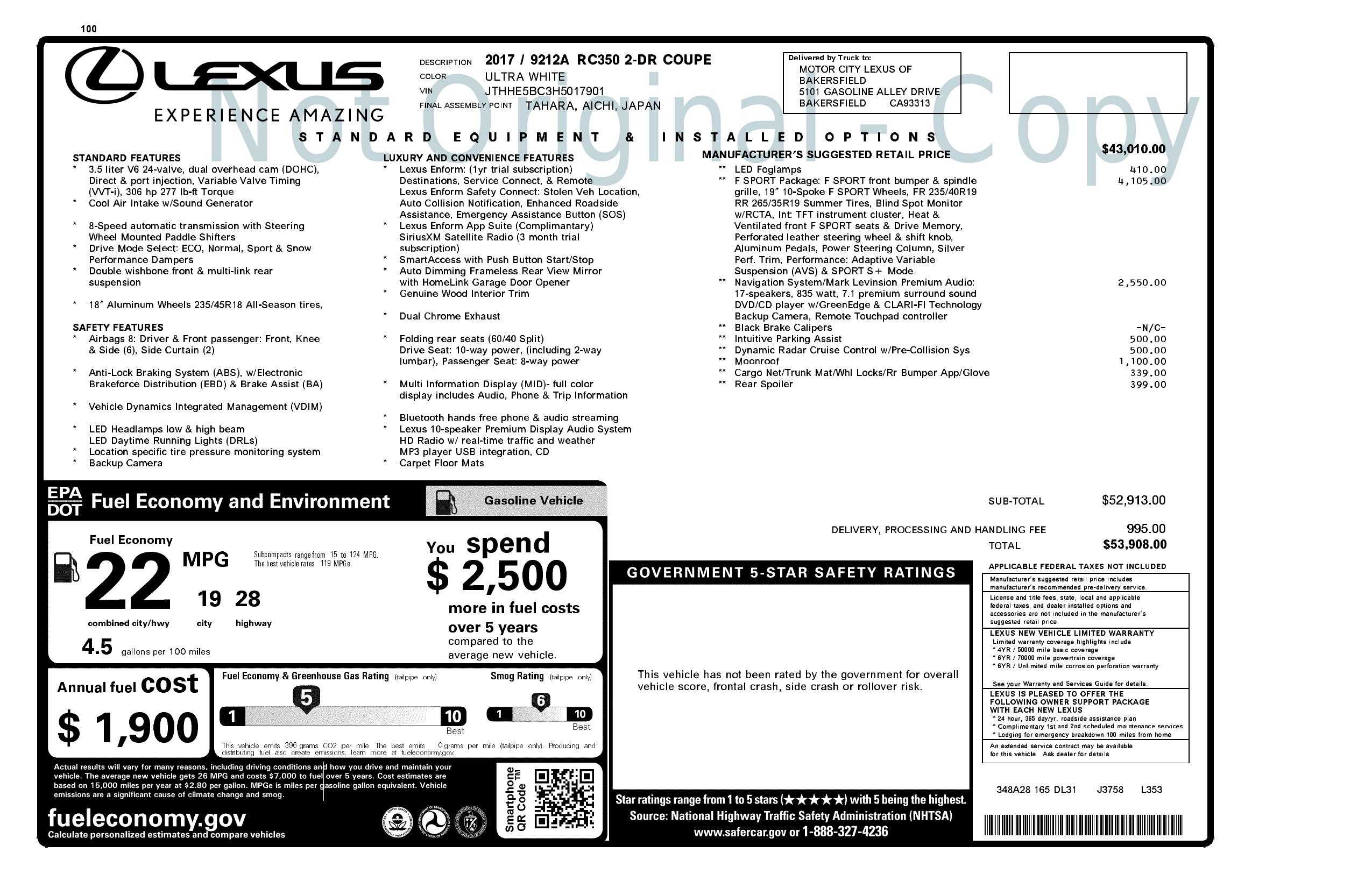 2017 Lexus Rc Rc 350 Rwd