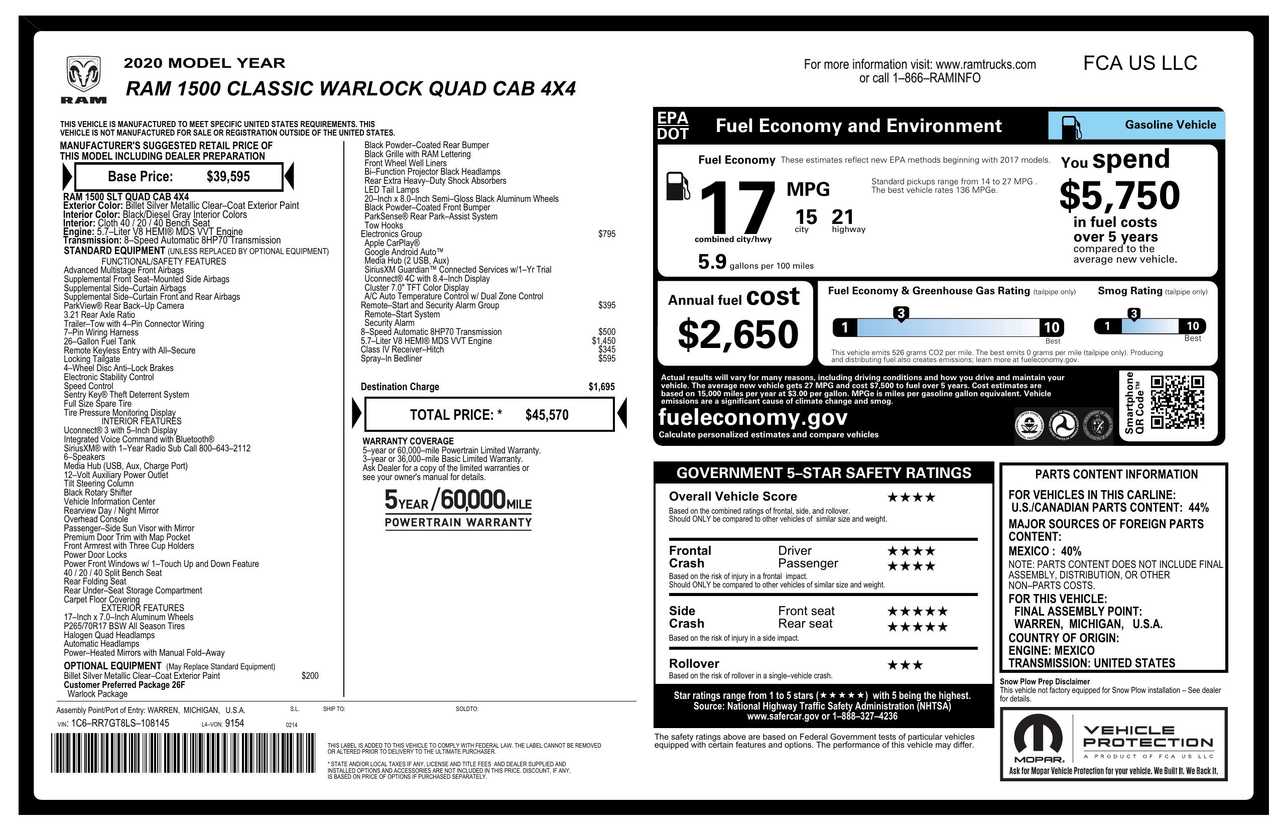 2020 Ram 1500 Classic Warlock 4x4 Quad Cab 6'4" Box