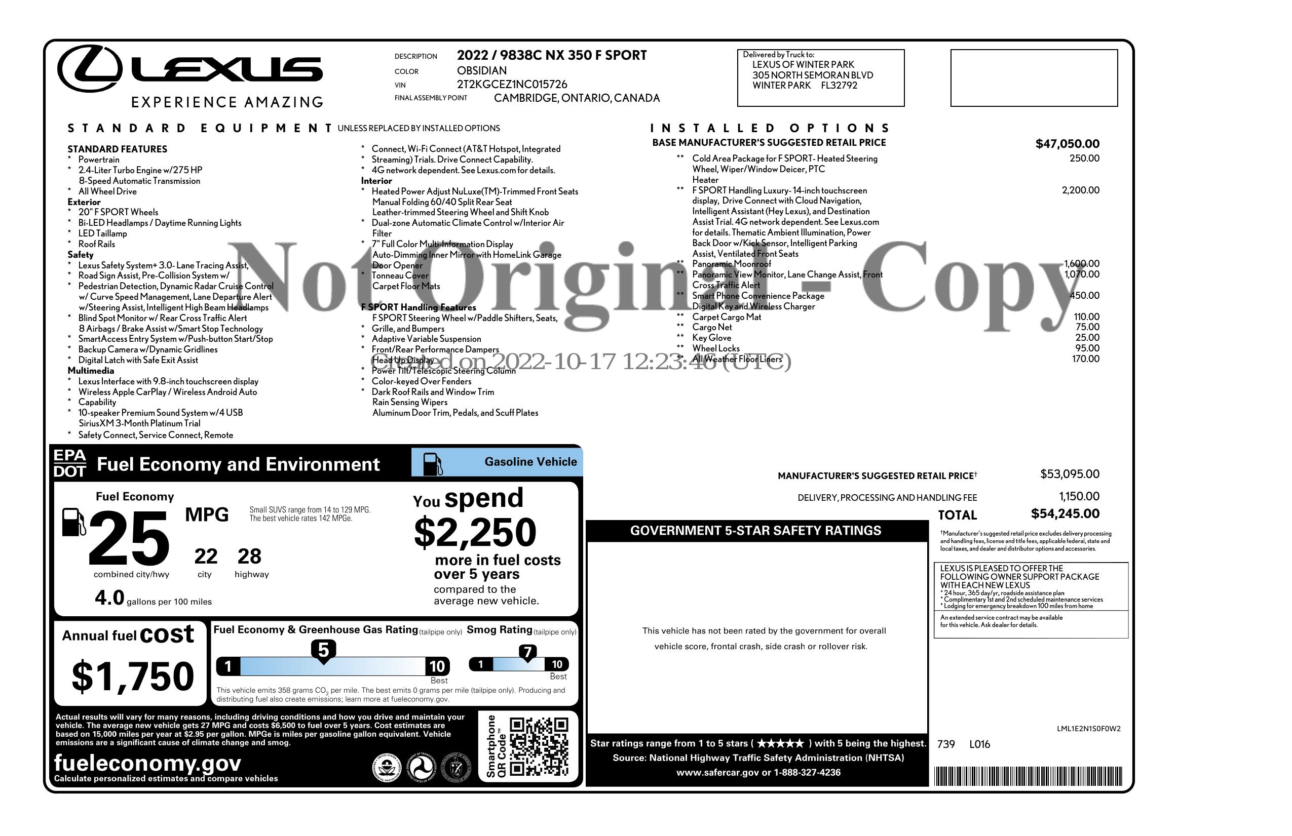 2022 Lexus Nx Nx 350 F Sport Handling Awd