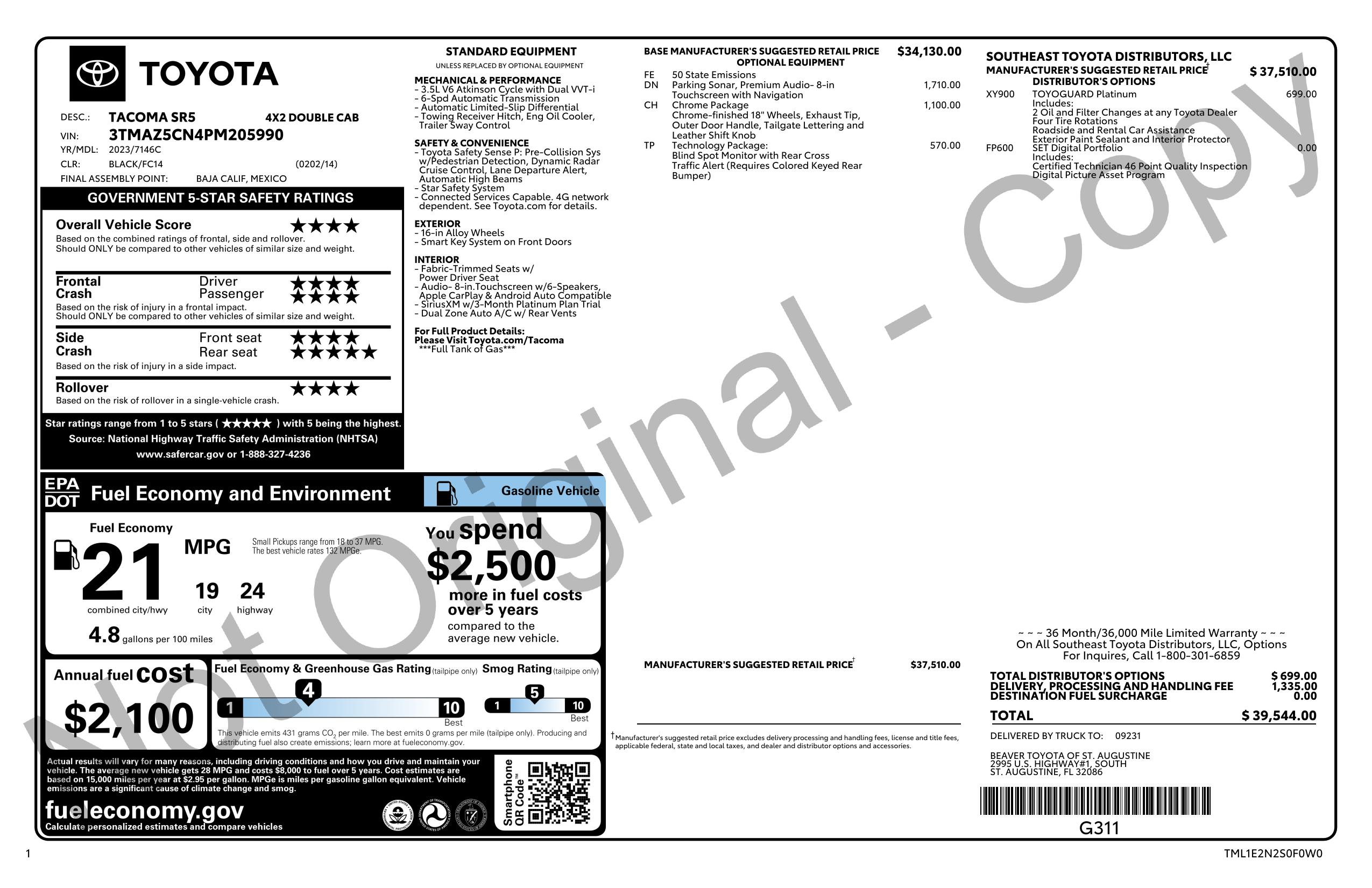 2023 Toyota Tacoma 2 Wd Double Cab 5' Bed V6 At (Natl)