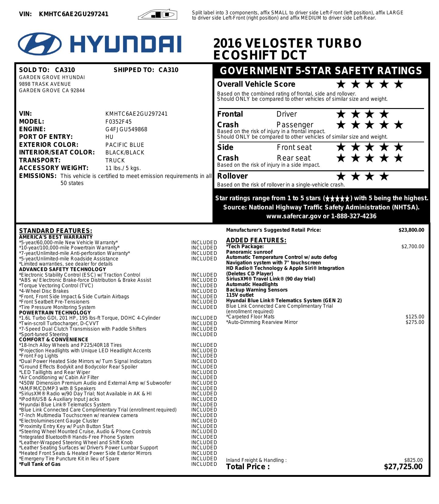 2016 Hyundai Veloster 3dr Cpe Auto Turbo
