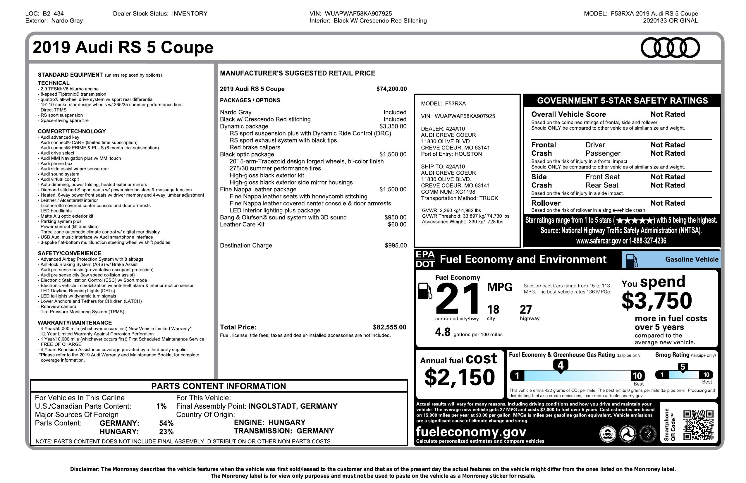 2019 Audi Rs 5 Coupe 2.9 Tfsi Quattro