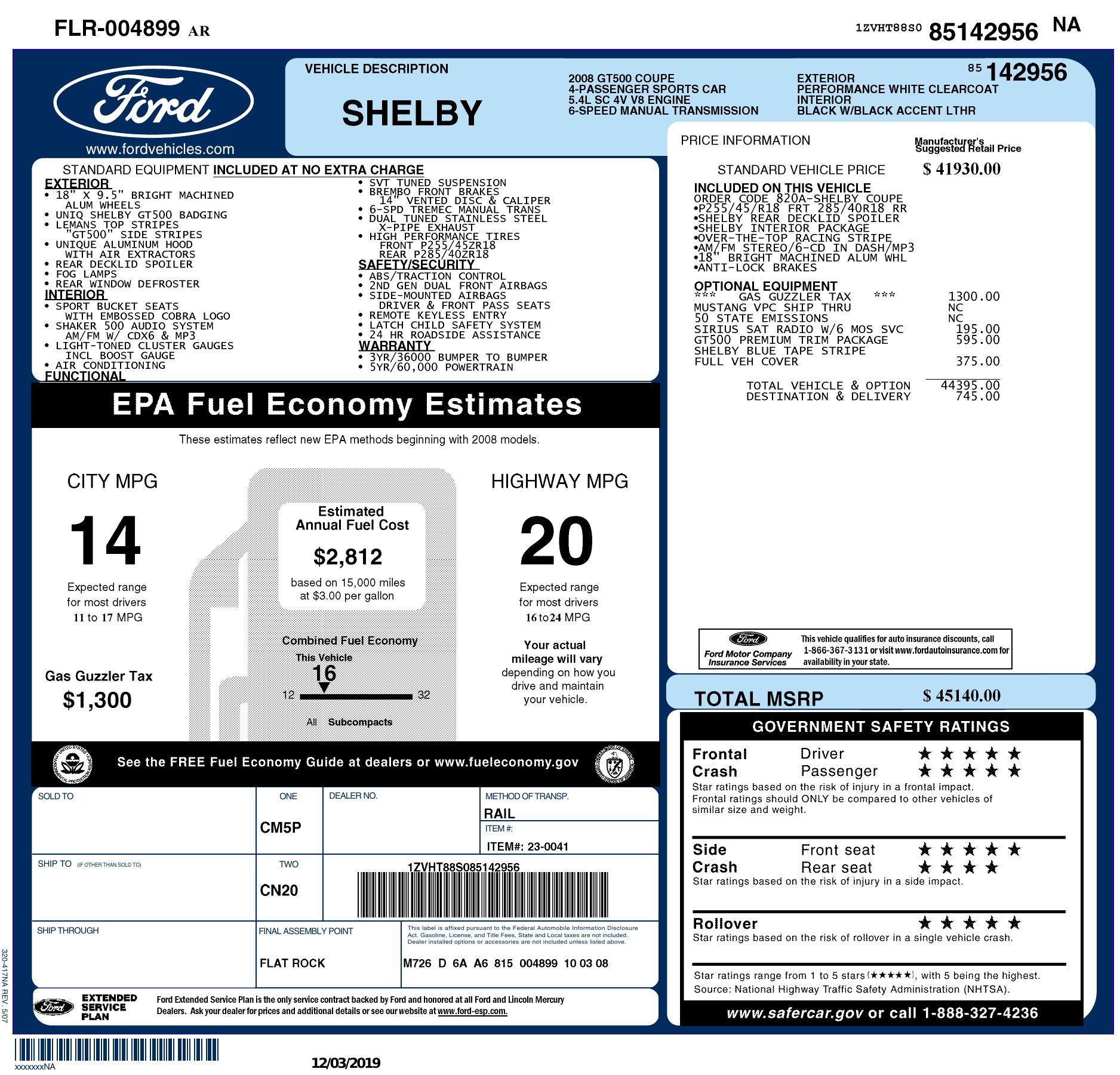 2008 Ford Mustang 2dr Cpe Shelby Gt500