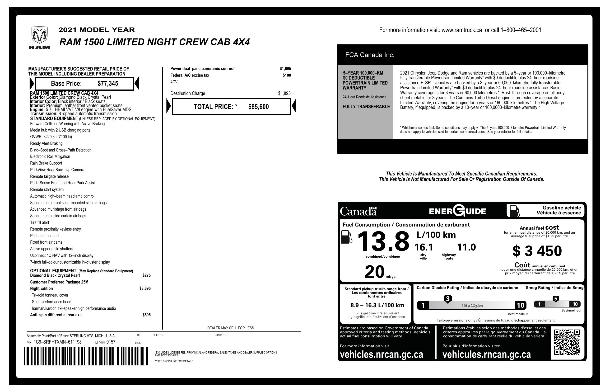2021 Ram 1500 Limited 4x4 Crew Cab 5'7" Box