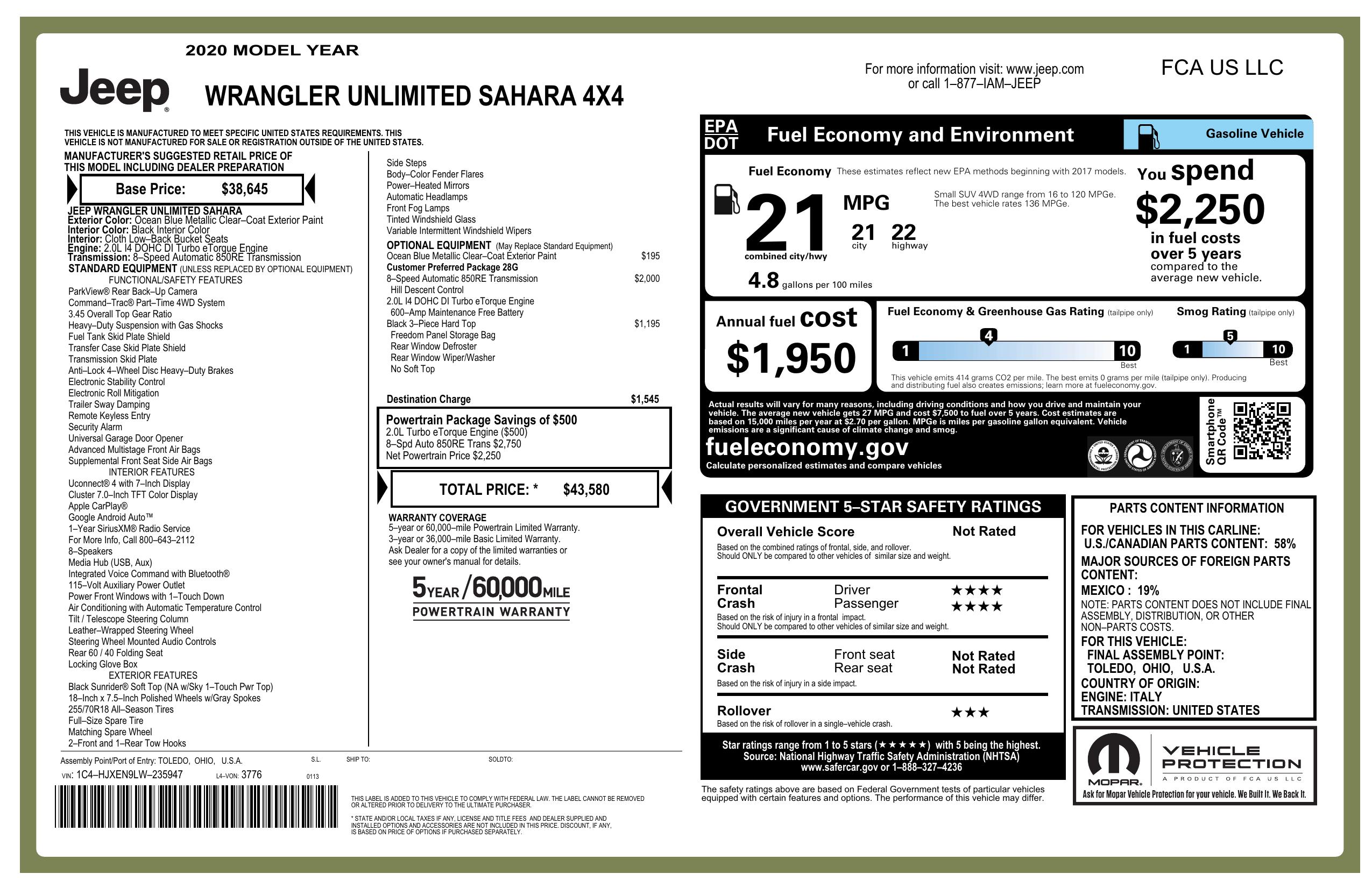 2020 Jeep Wrangler Unlimited Sahara 4x4