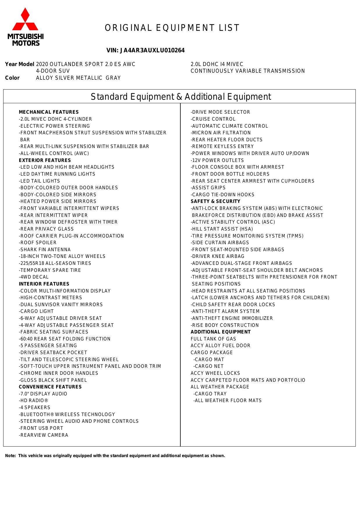 2020 Mitsubishi Outlander Sport 2.0 Awc Cvt