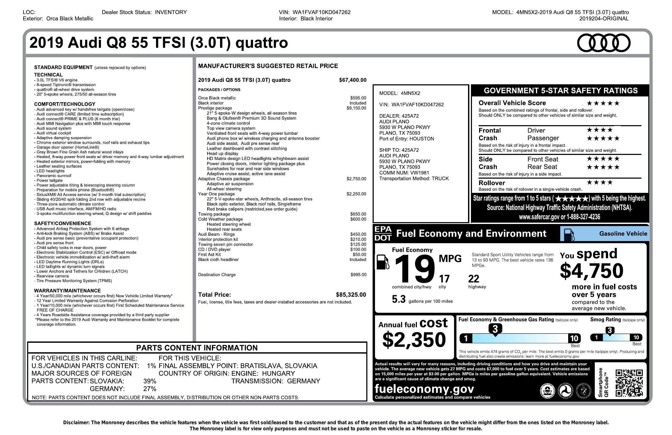 2019 Audi Q8 Prestige 55 Tfsi Quattro