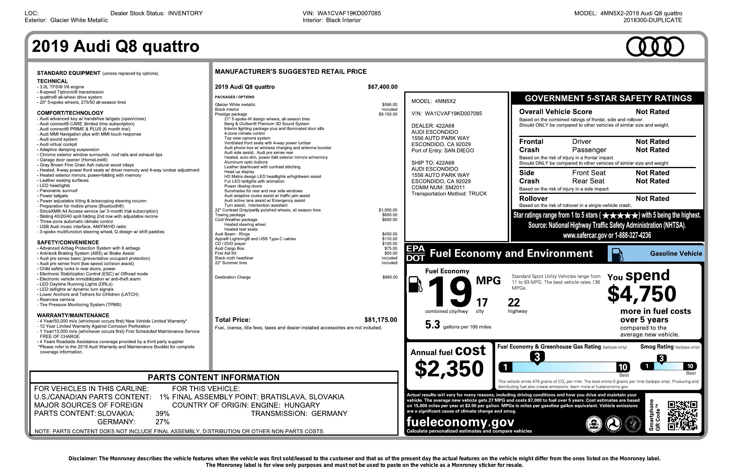 2019 Audi Q8 Prestige 55 Tfsi Quattro