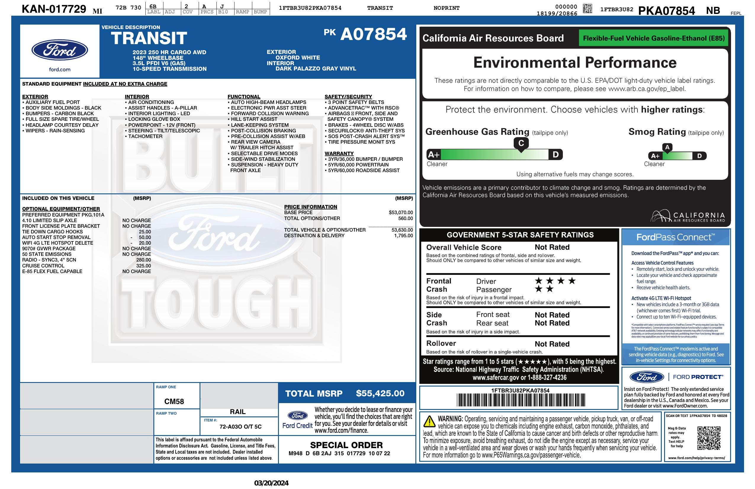 2023 Ford Transit Cargo Van T 250 148" El Hi Rf 9070 Gvwr Awd