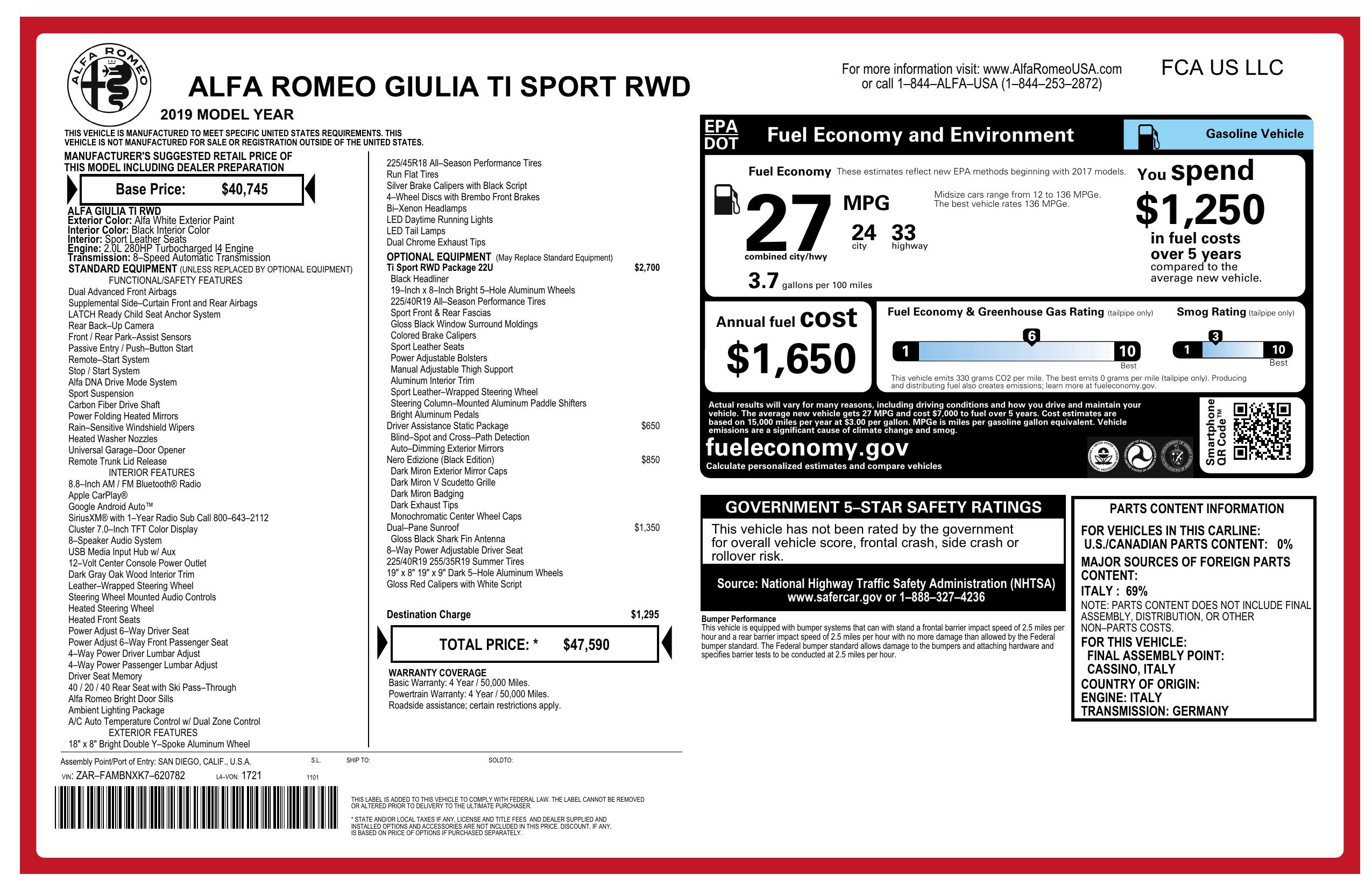 2019 Alfa Romeo Giulia Ti Sport Rwd