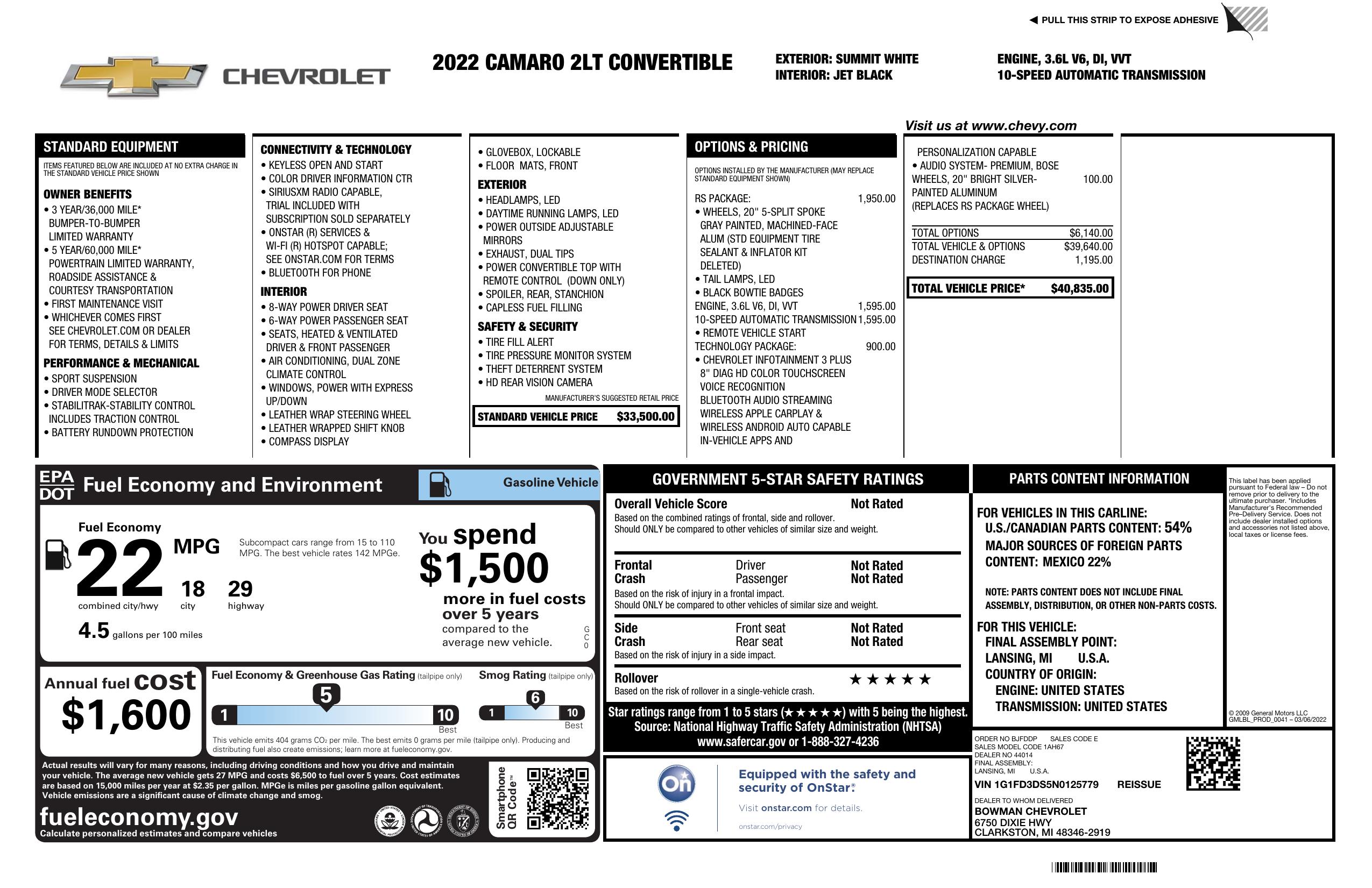 2022 Chevrolet Camaro 2dr Conv 2 Lt