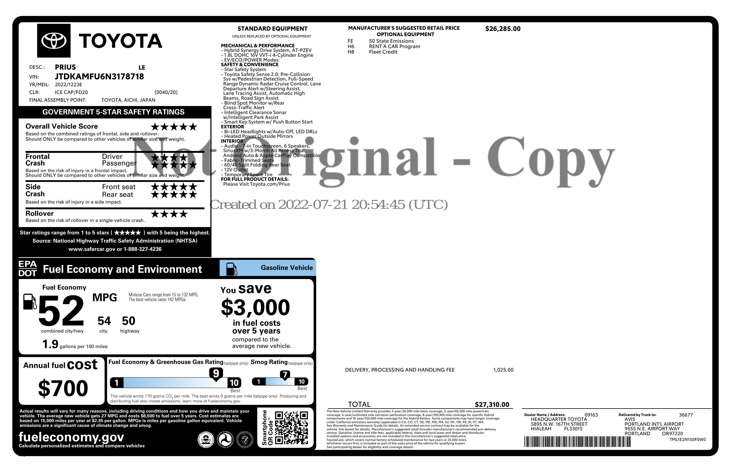 2022 Toyota Prius (Natl)