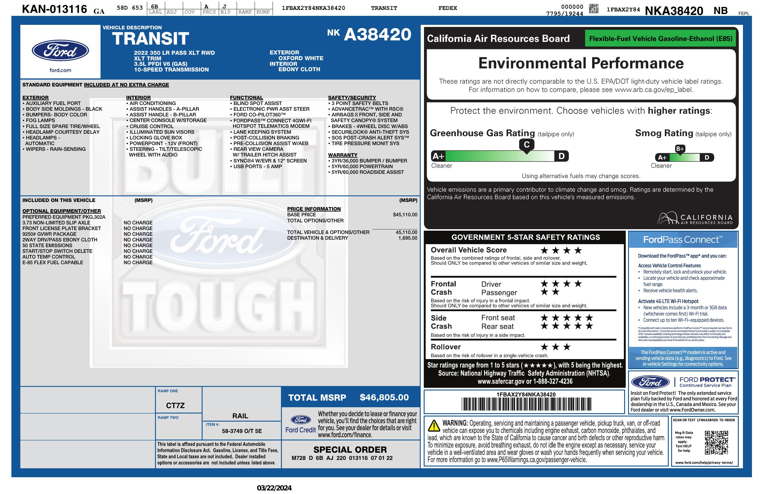 2022 Ford Transit Passenger Wagon T 350 148" Low Roof Rwd