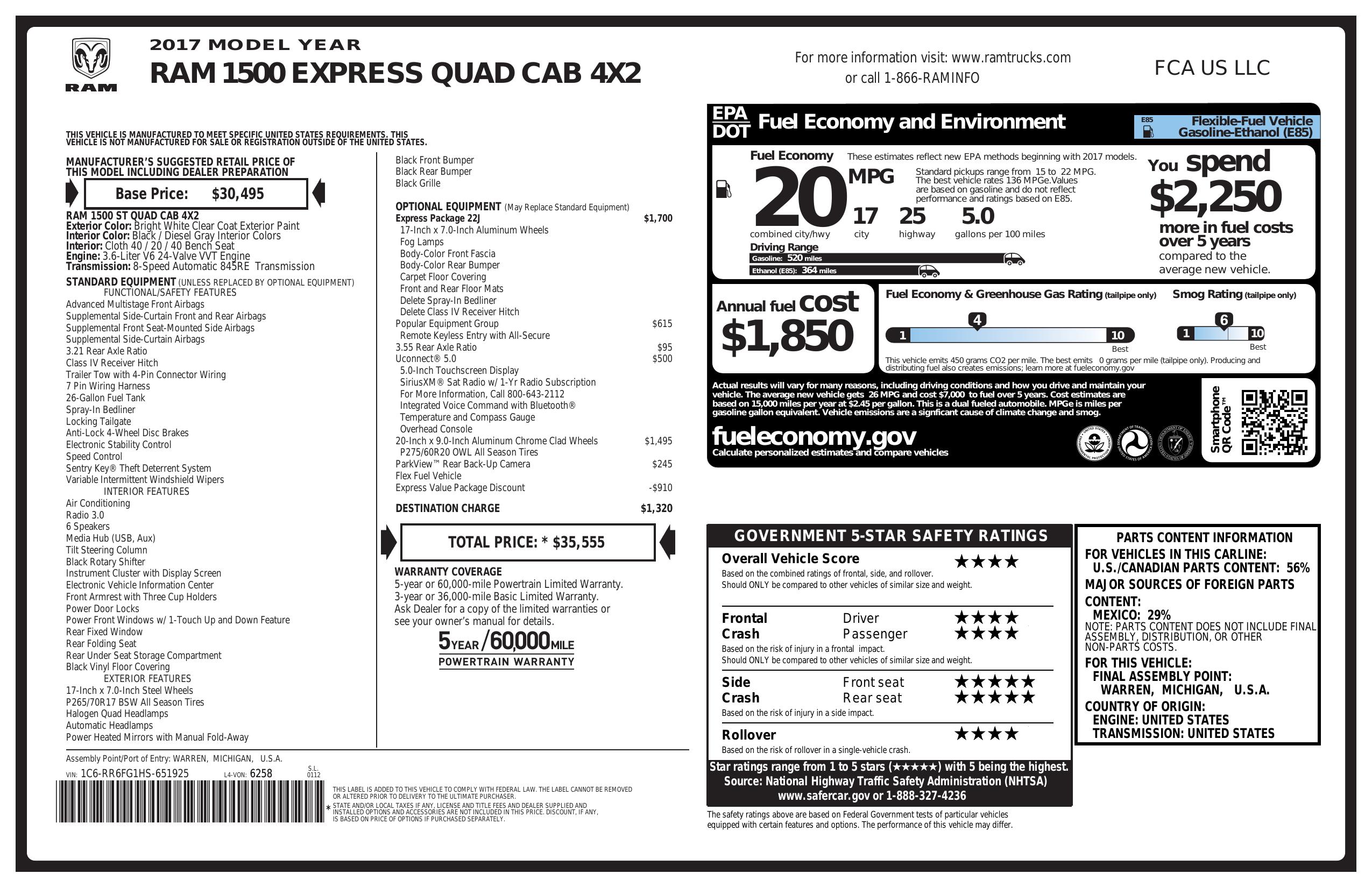 2017 Ram 1500 Express 4x2 Quad Cab 6'4" Box