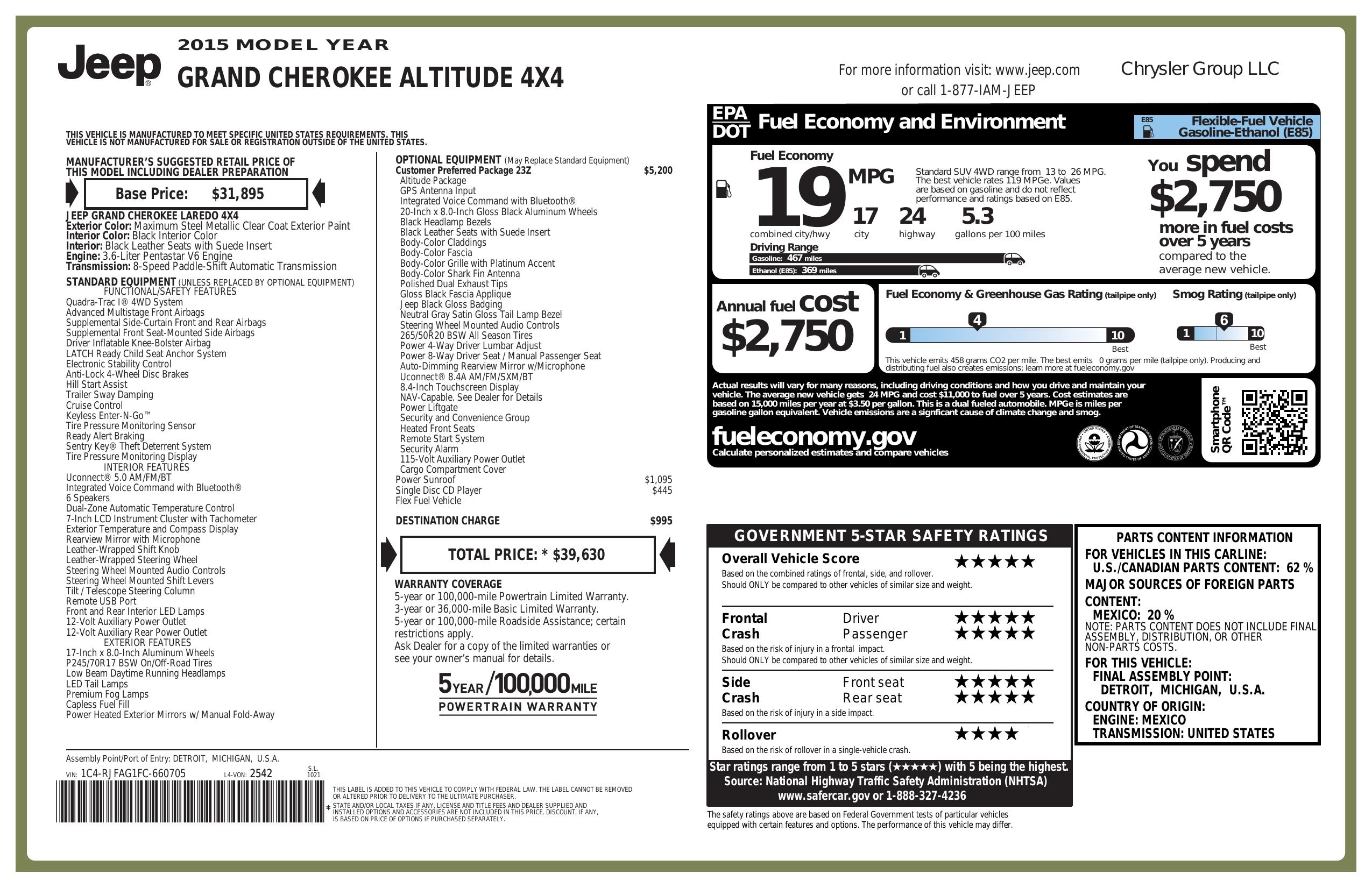2015 Jeep Grand Cherokee 4 Wd 4dr Altitude