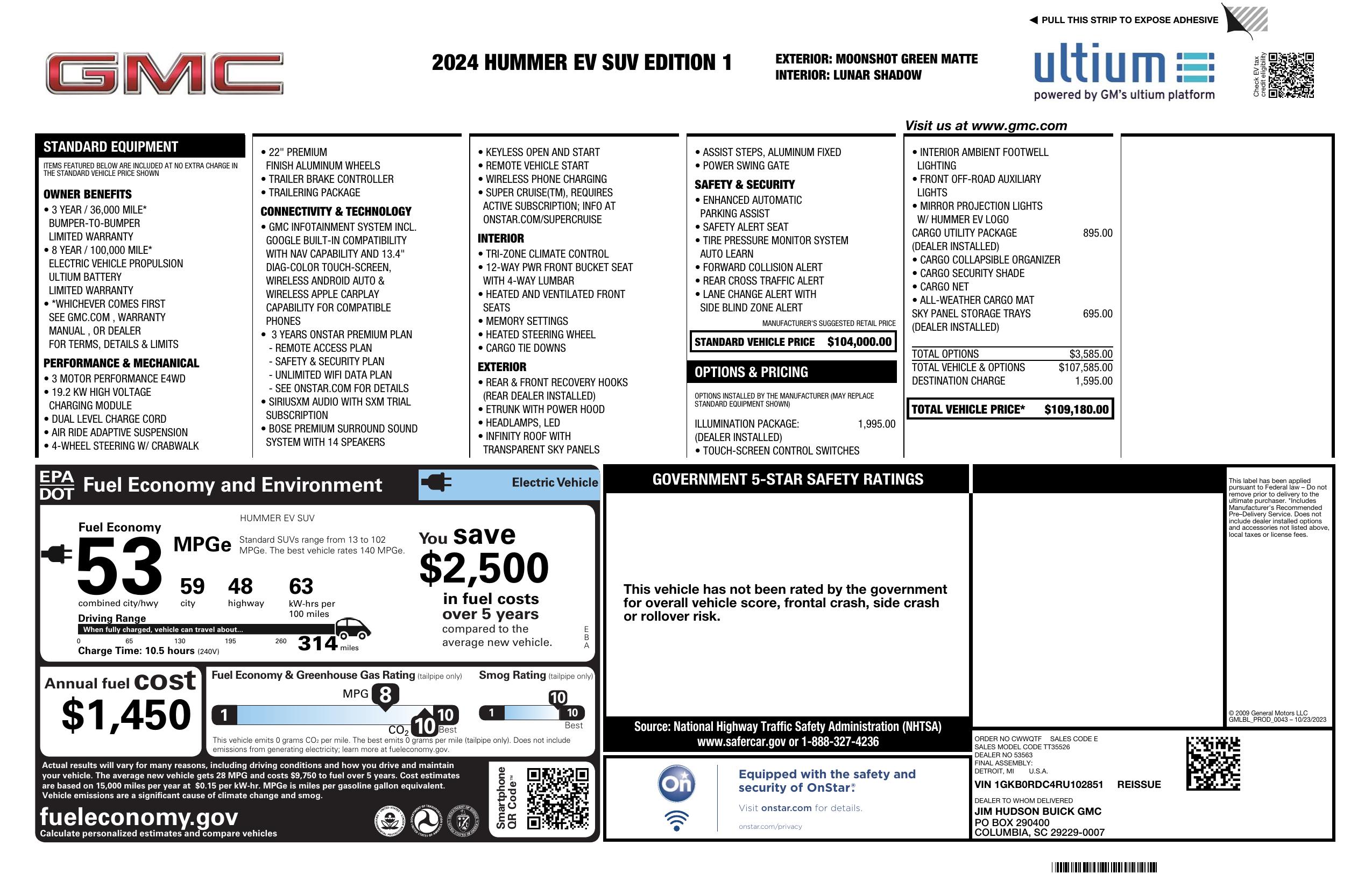 2024 GMC Hummer Ev Suv E4 Wd 4dr 3 X