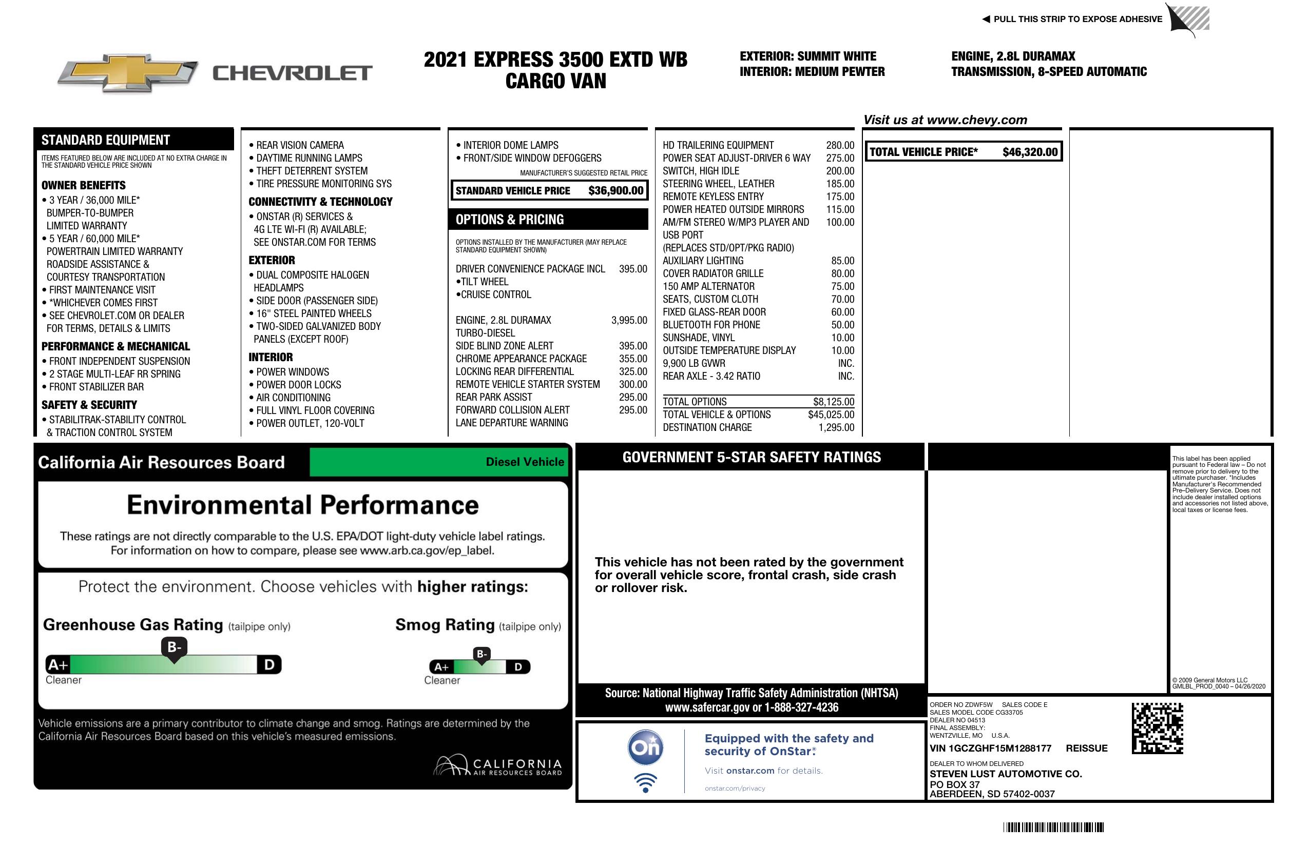 2021 Chevrolet Express Cargo Van Rwd 3500 155"