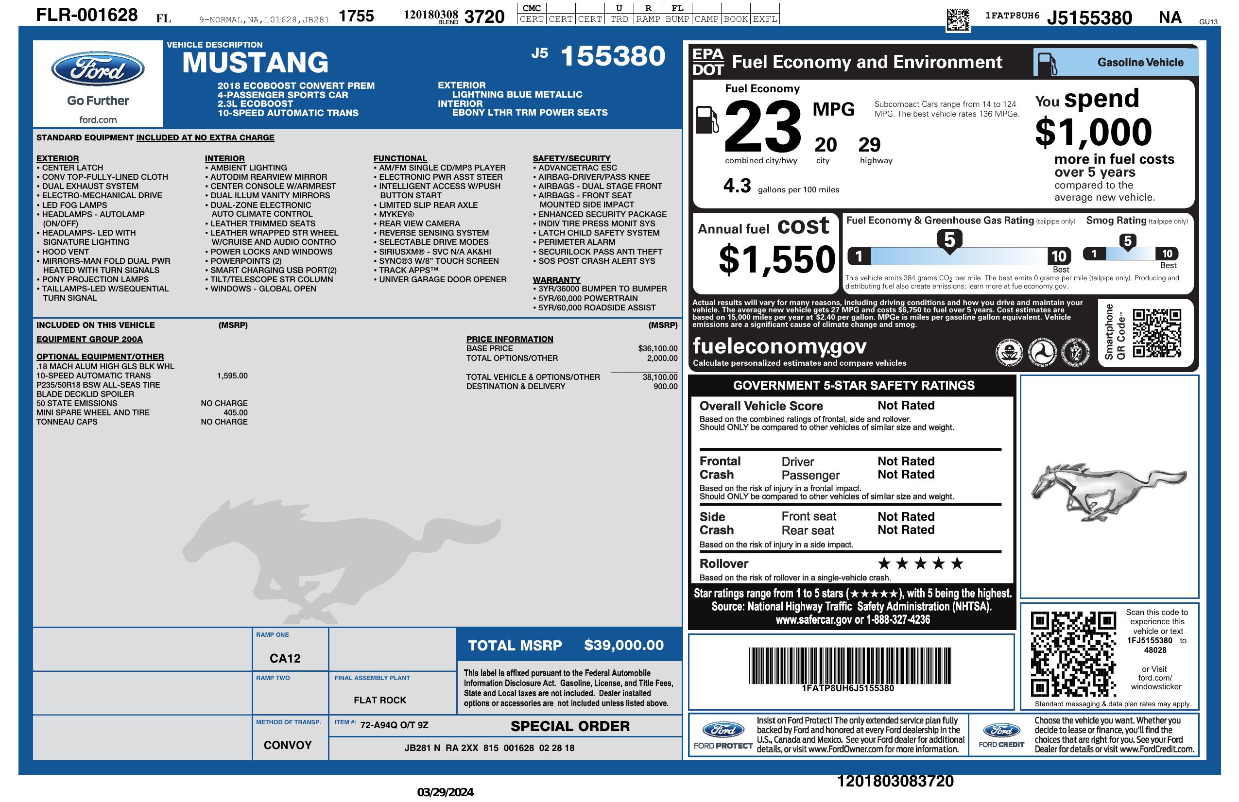 2018 Ford Mustang Eco Boost Convertible