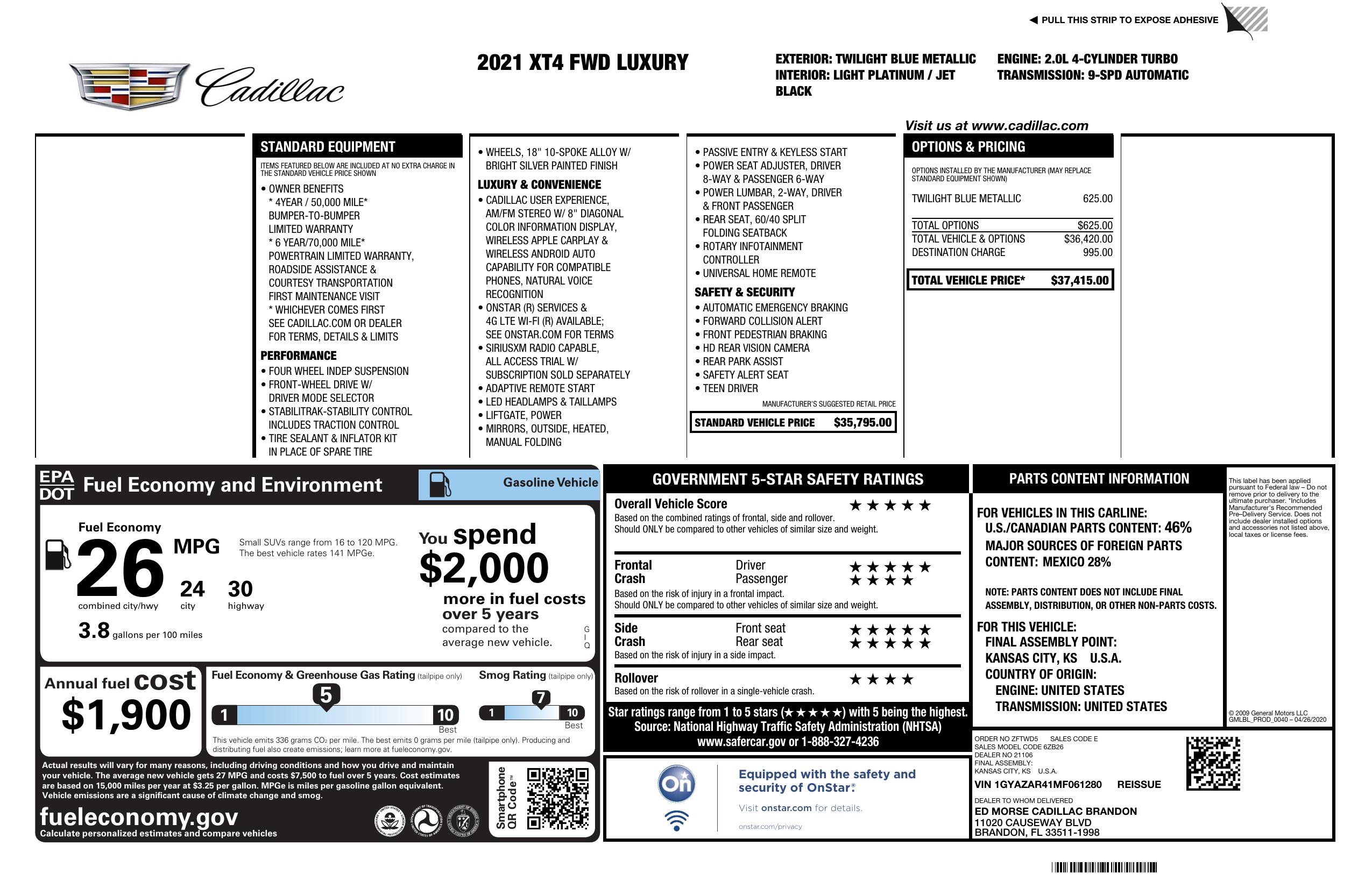 2021 Cadillac Xt4 Fwd 4dr Luxury