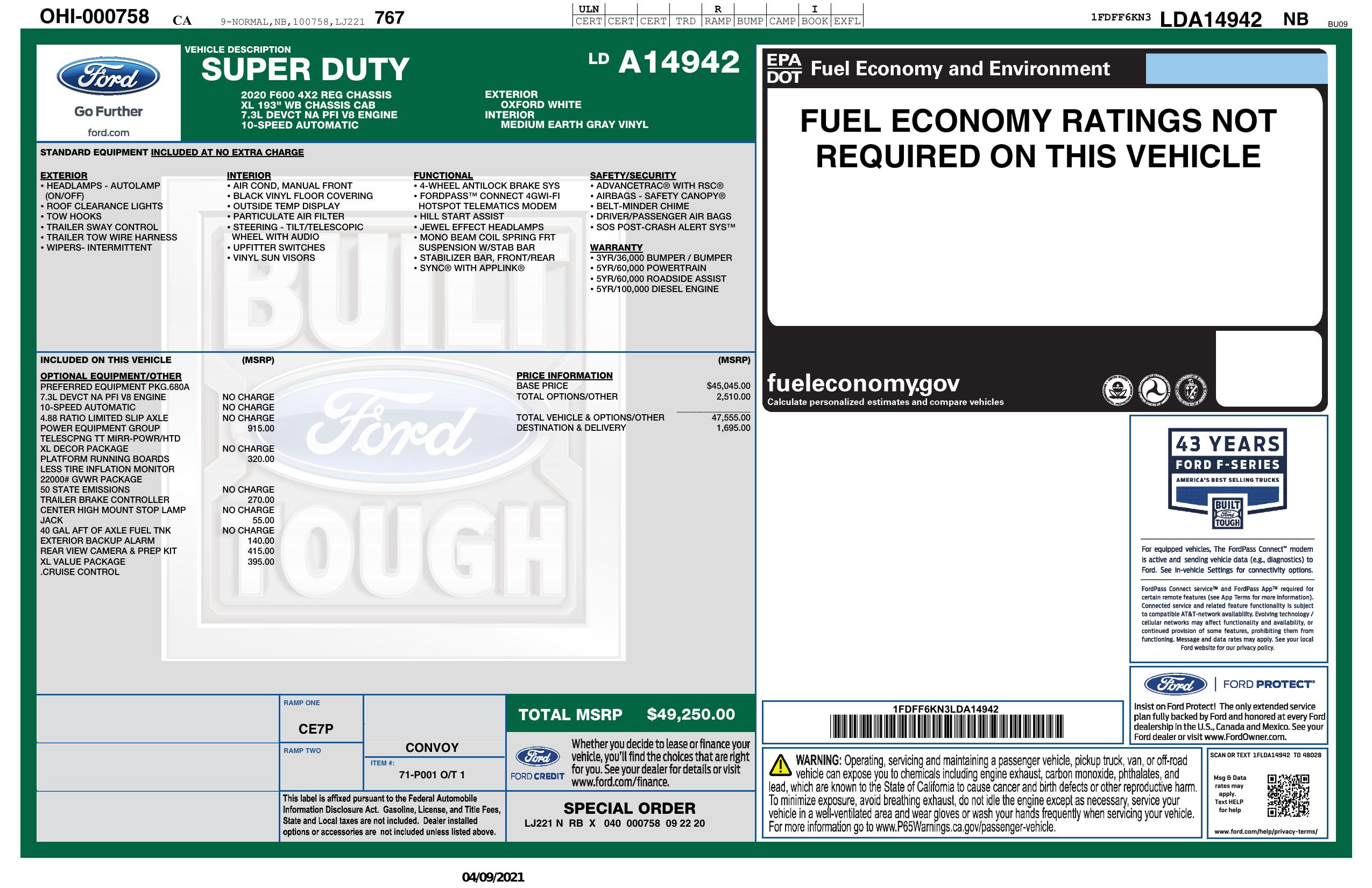 2020 Ford Super Duty F 600 Drw 2 Wd Reg Cab Wb Ca