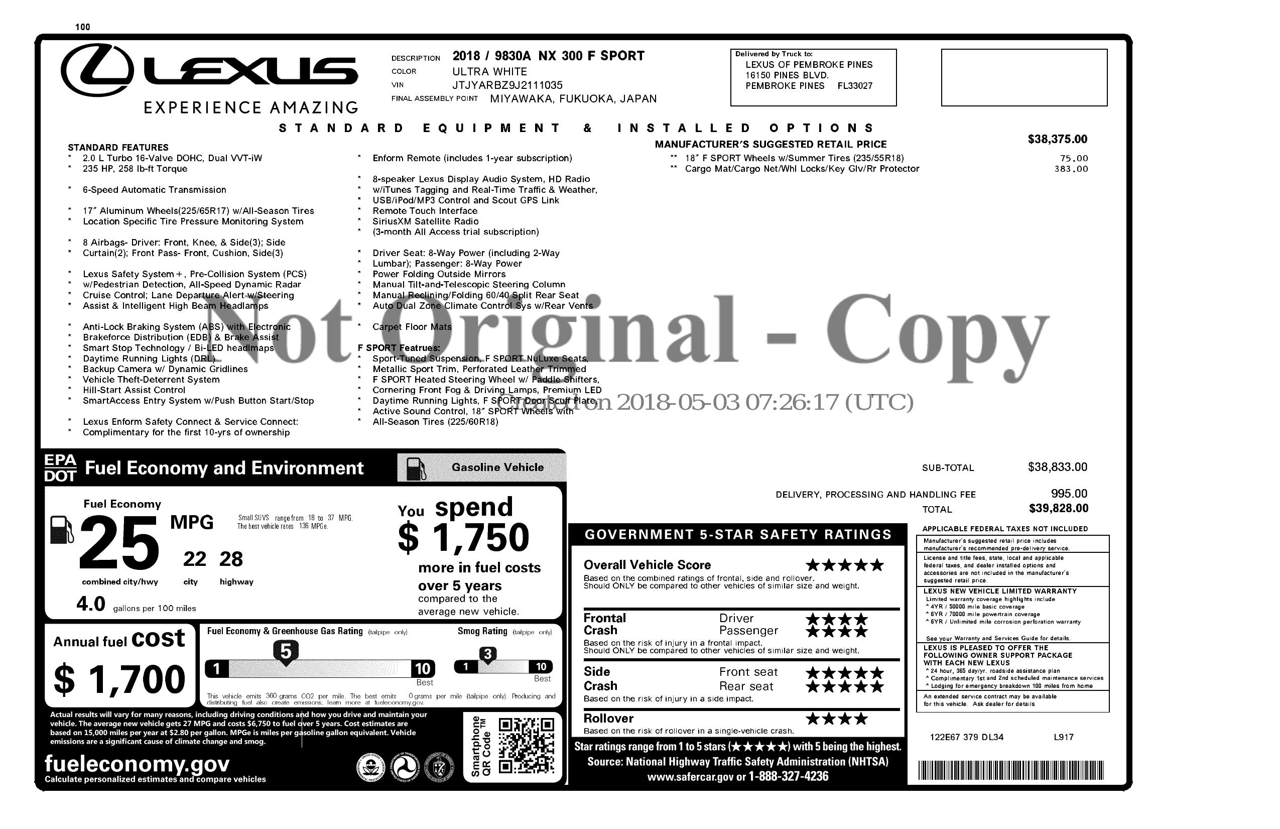 2018 Lexus Nx 300 Fwd
