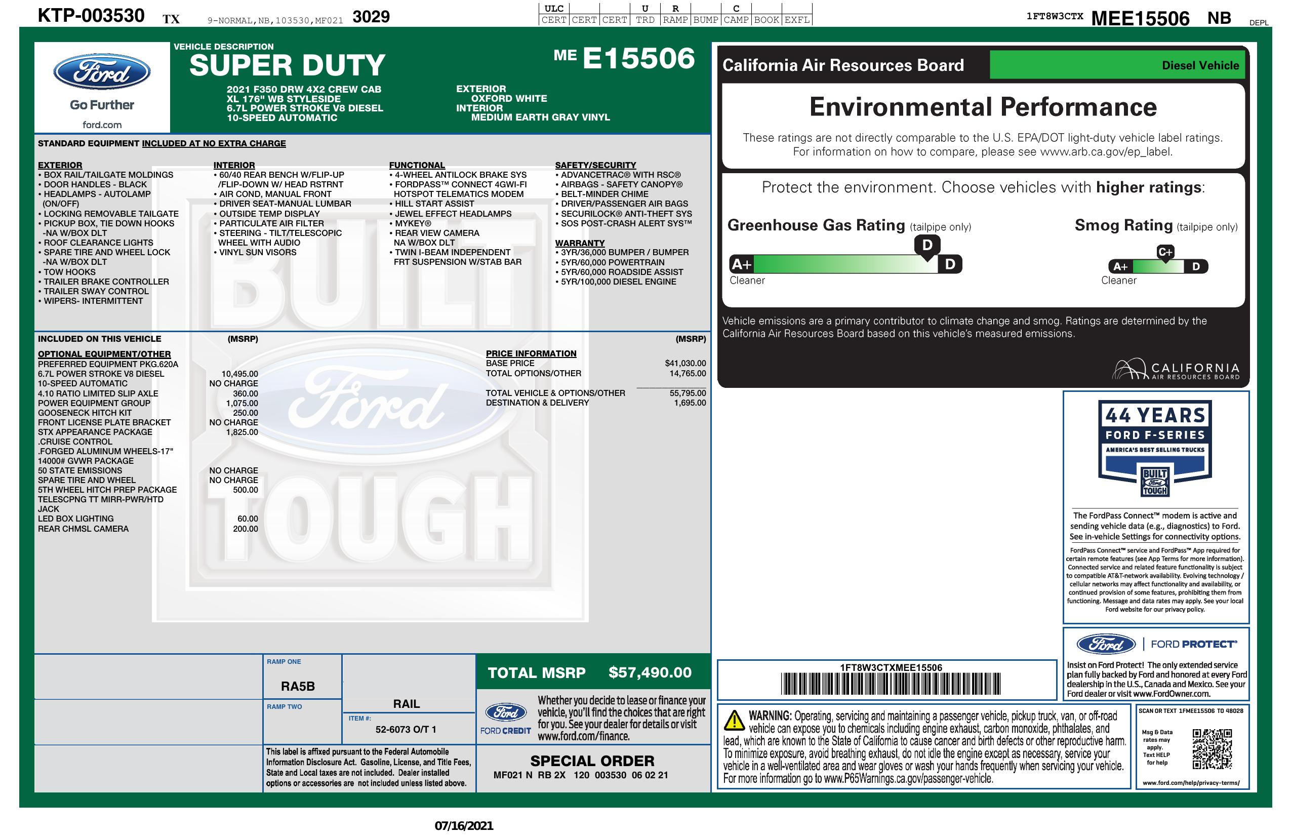 2021 Ford Super Duty F 350 Drw 2 Wd Crew Cab 8' Box