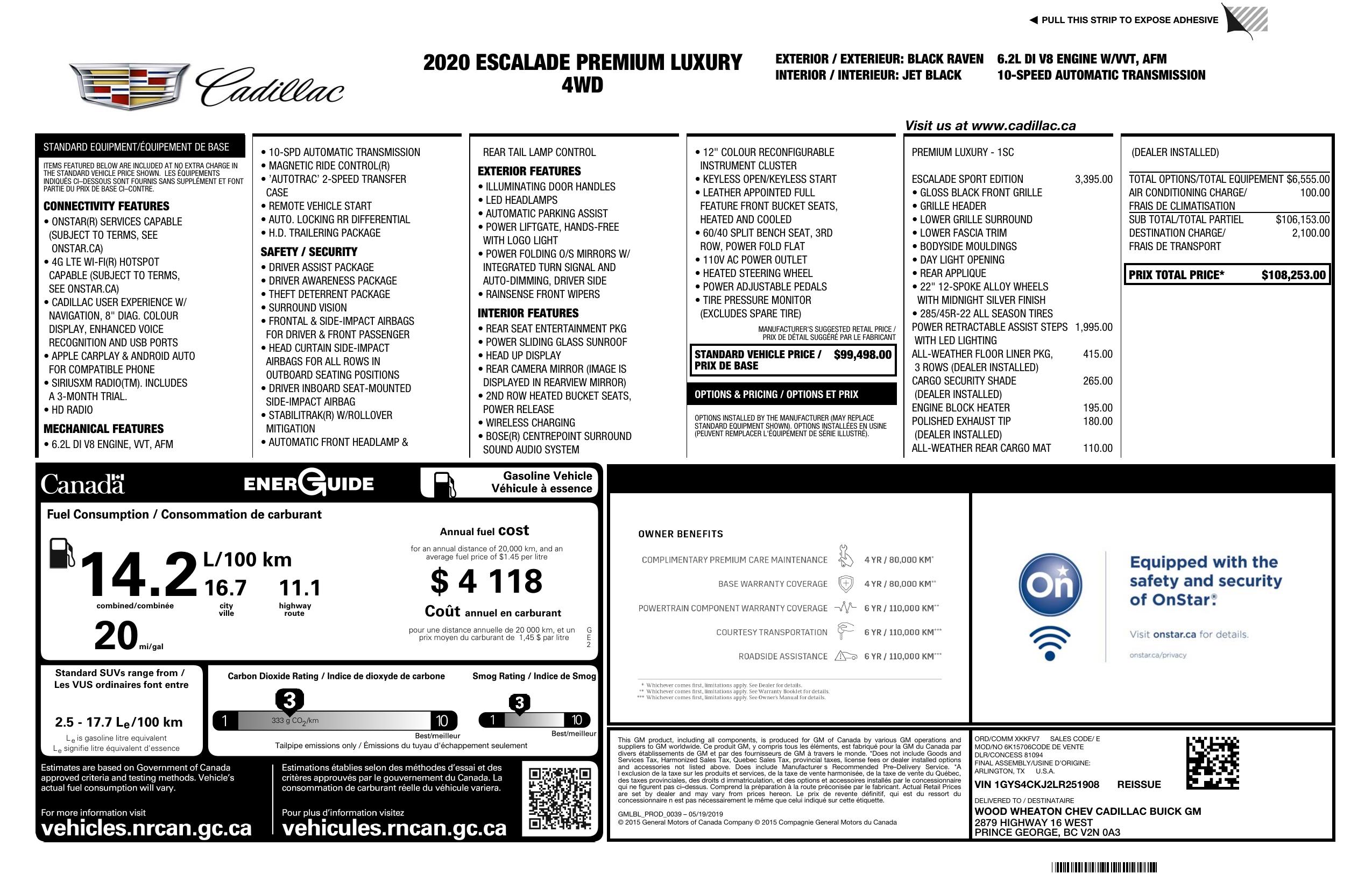 2020 Cadillac Escalade 4 Wd 4dr Premium Luxury