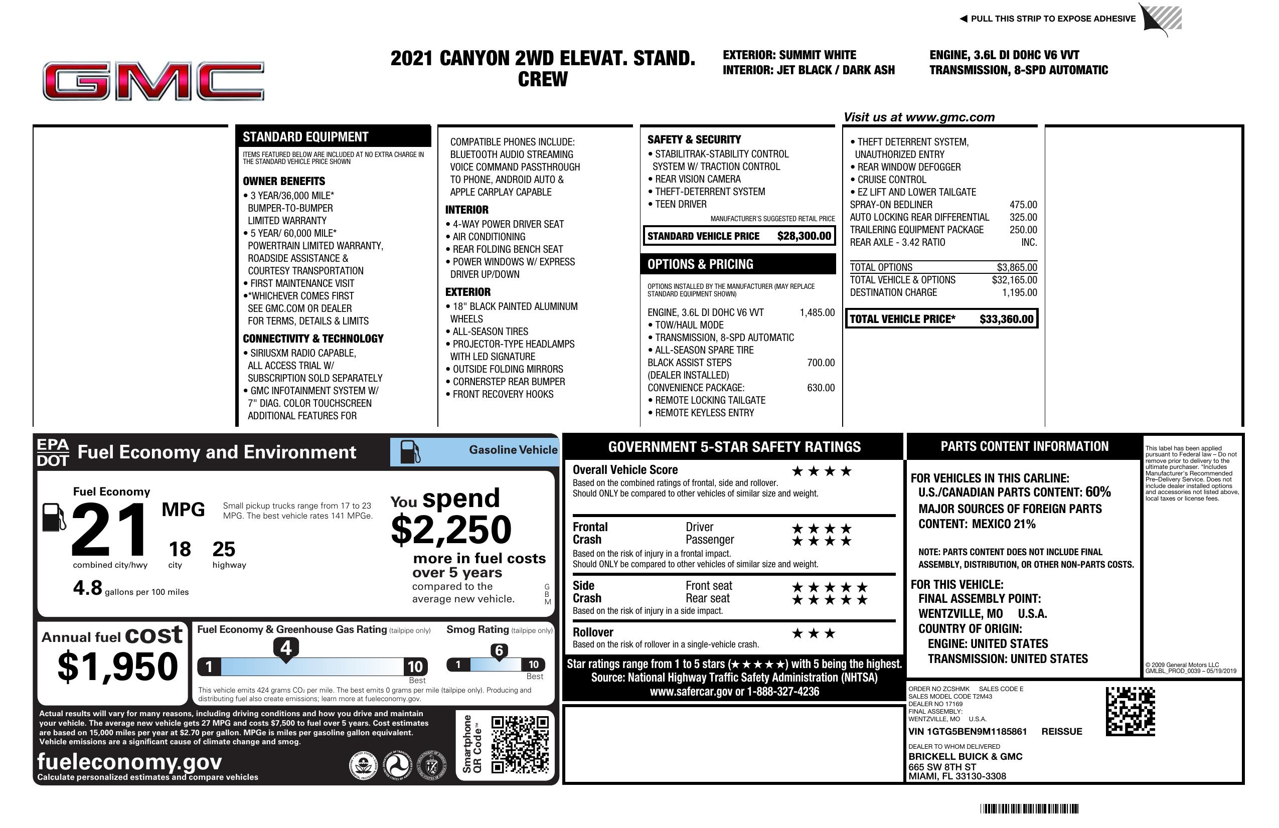 2021 GMC Canyon 2 Wd Crew Cab 128" Elevation Standard