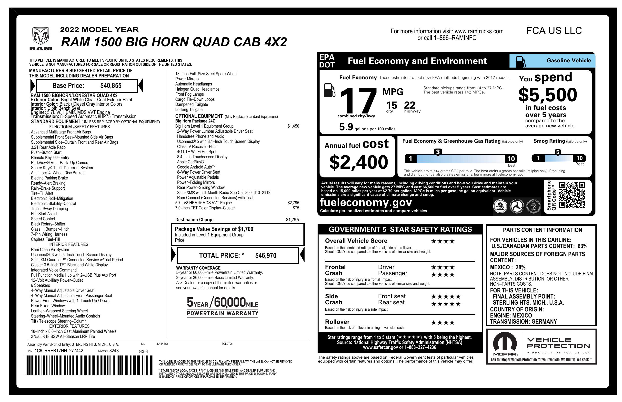 2022 Ram 1500 Big Horn 4x2 Quad Cab 6'4" Box
