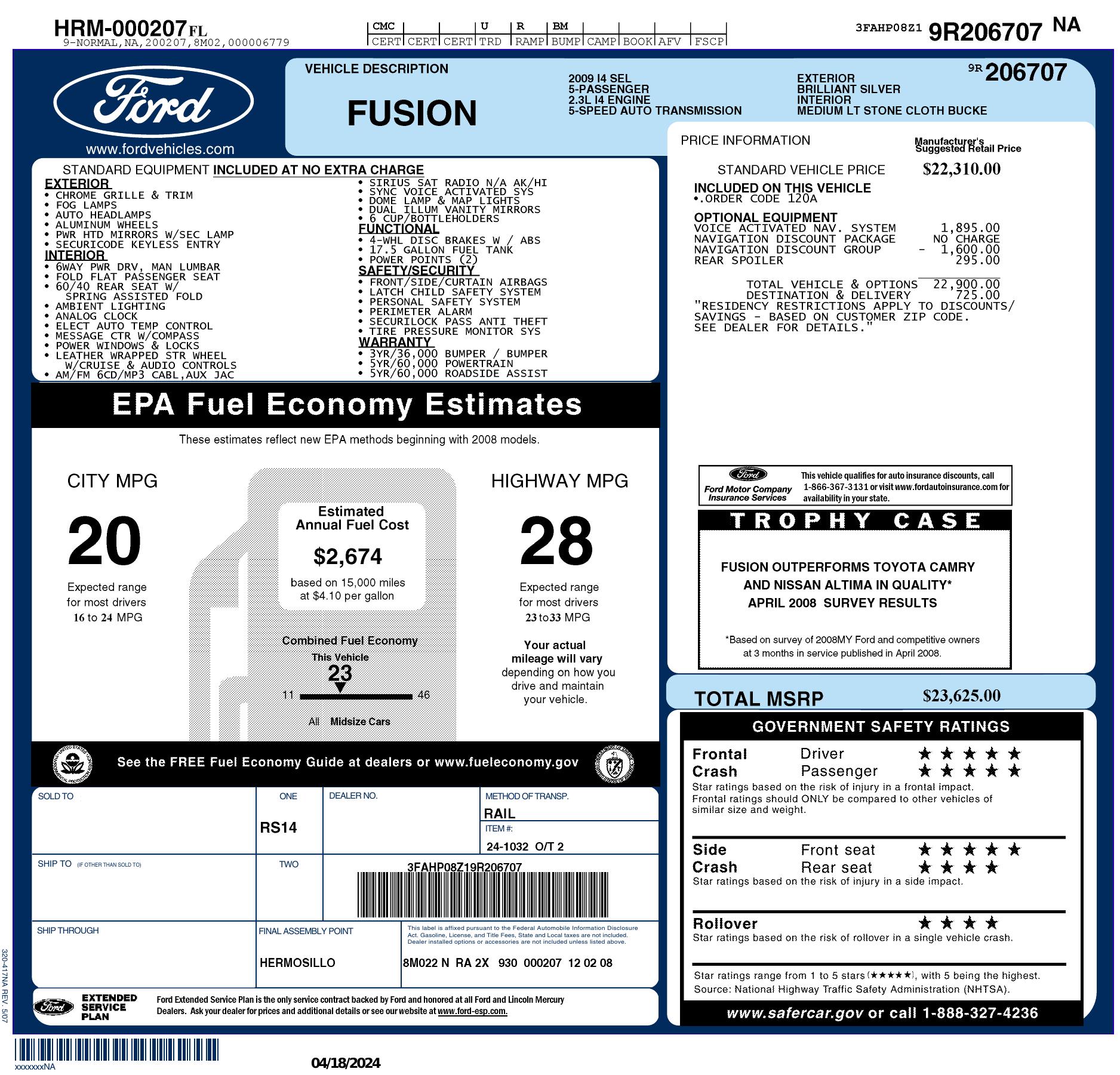 2009 Ford Fusion 4dr Sdn I4 Sel Fwd