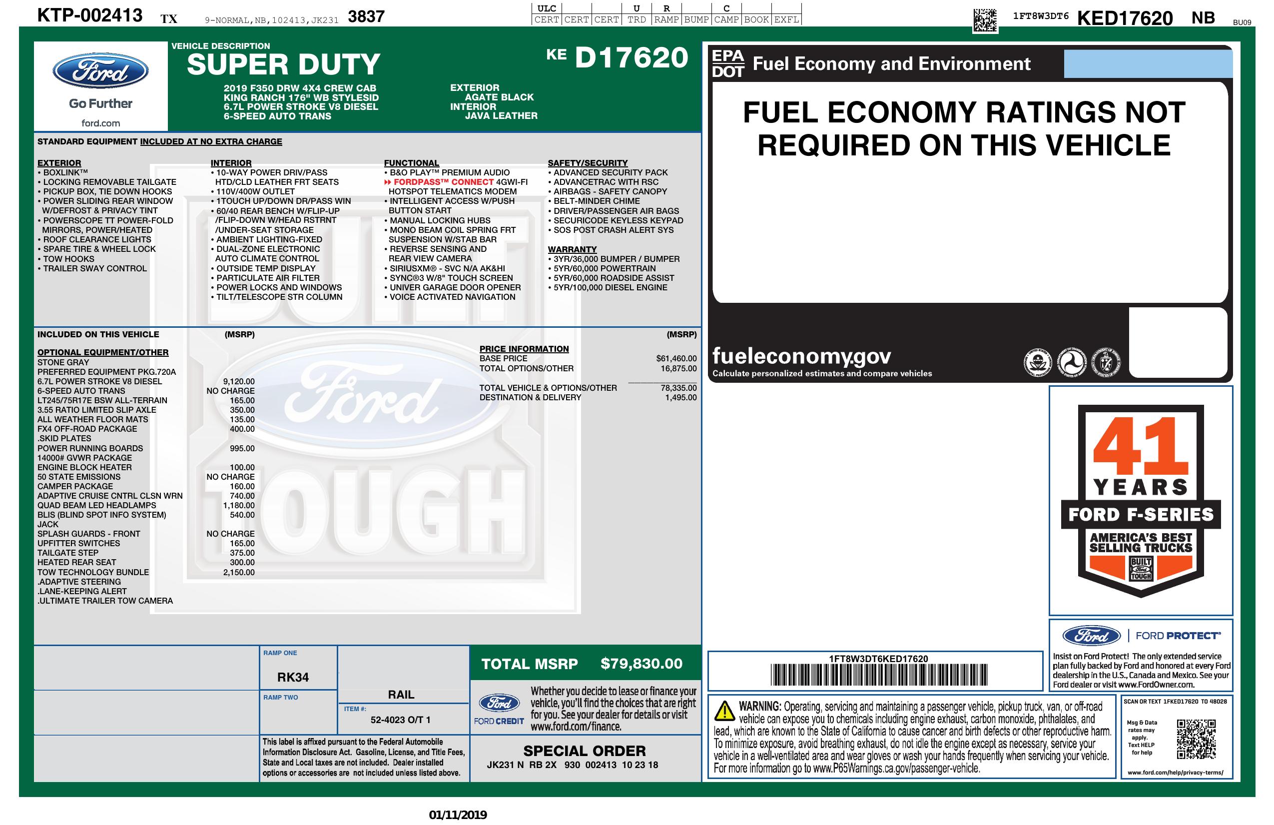 2019 Ford Super Duty F 350 Drw 4 Wd Crew Cab 8' Box