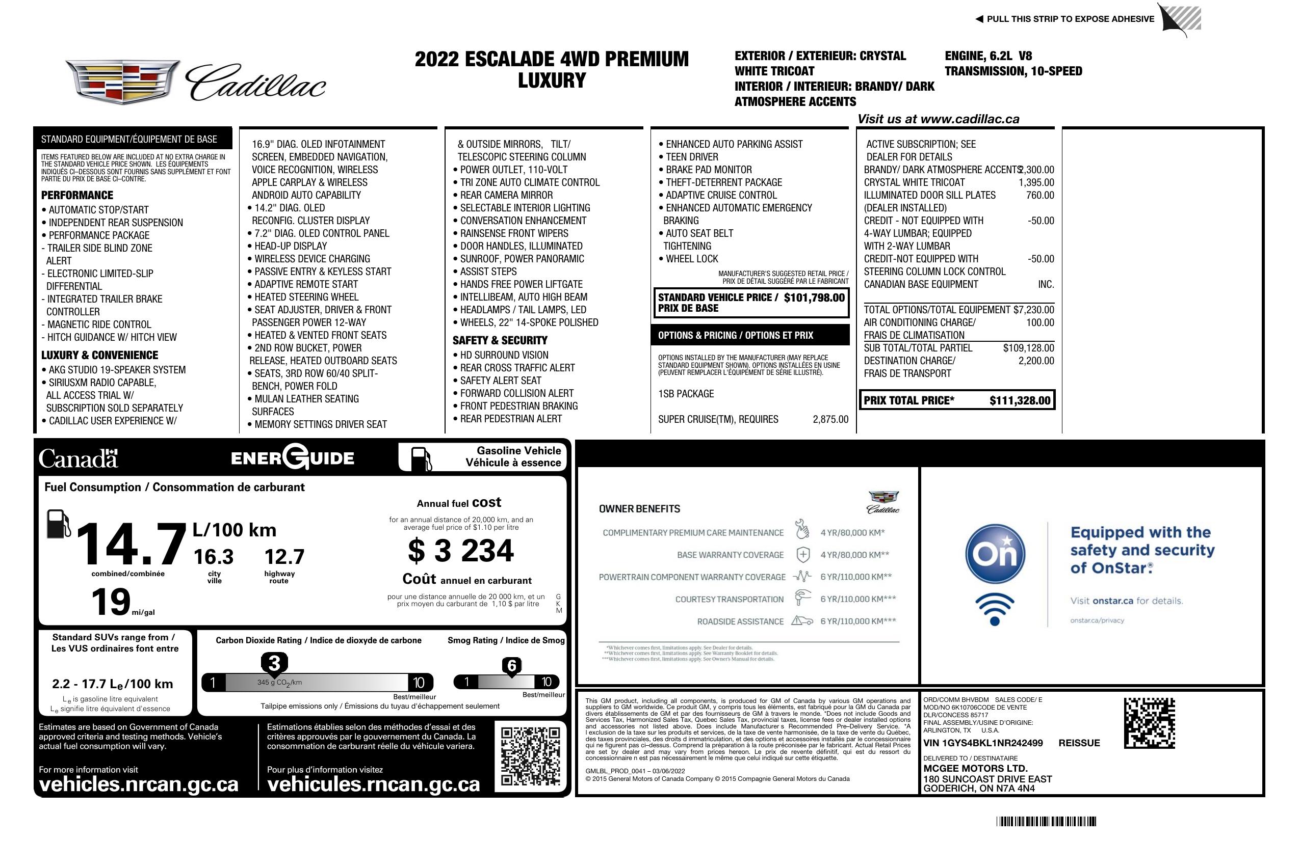 2022 Cadillac Escalade 4 Wd 4dr Premium Luxury