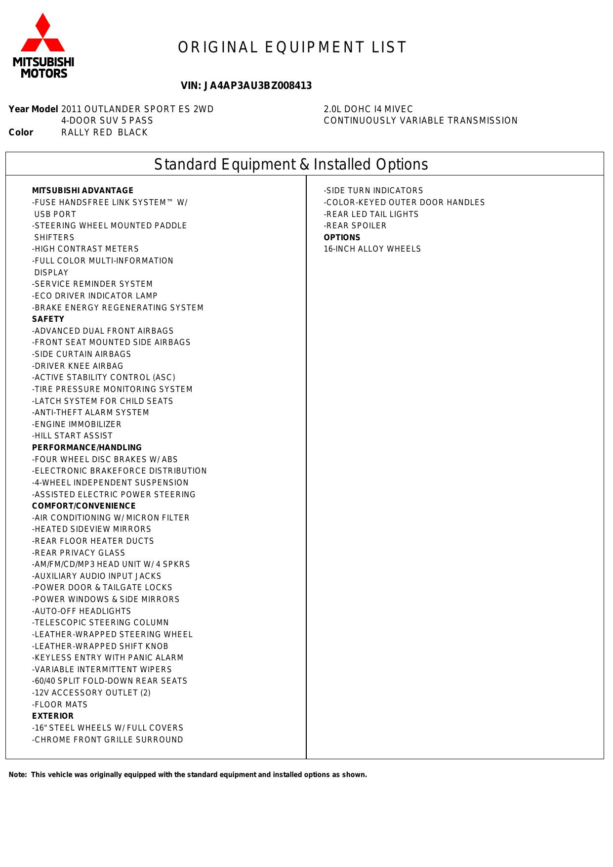 2011 Mitsubishi Outlander Sport 2 Wd 4dr Es