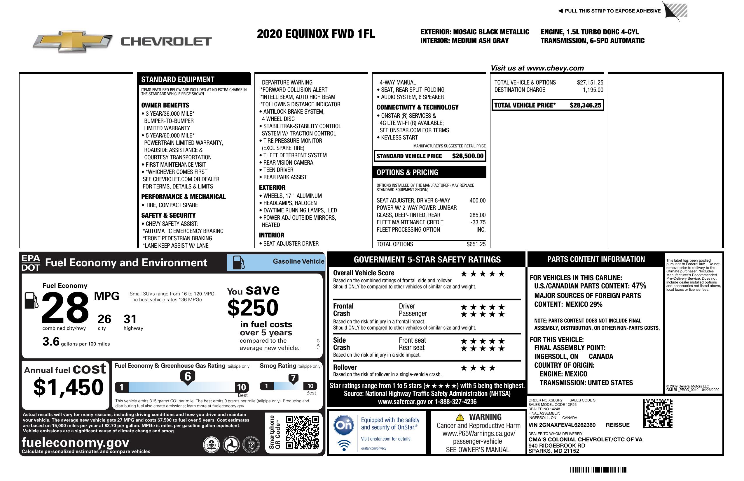 2020 Chevrolet Equinox Fwd 4dr Ls W/1 Fl
