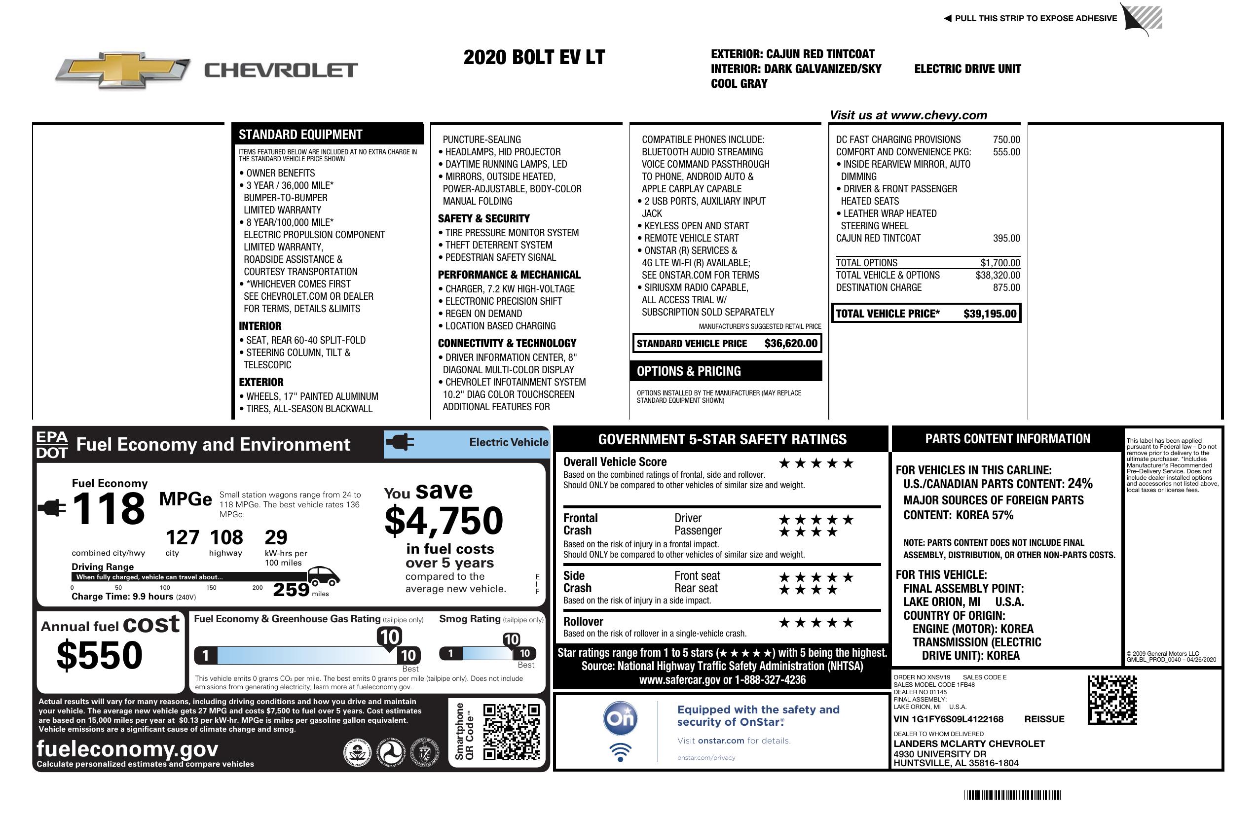 2020 Chevrolet Bolt Ev 5dr Wgn Lt