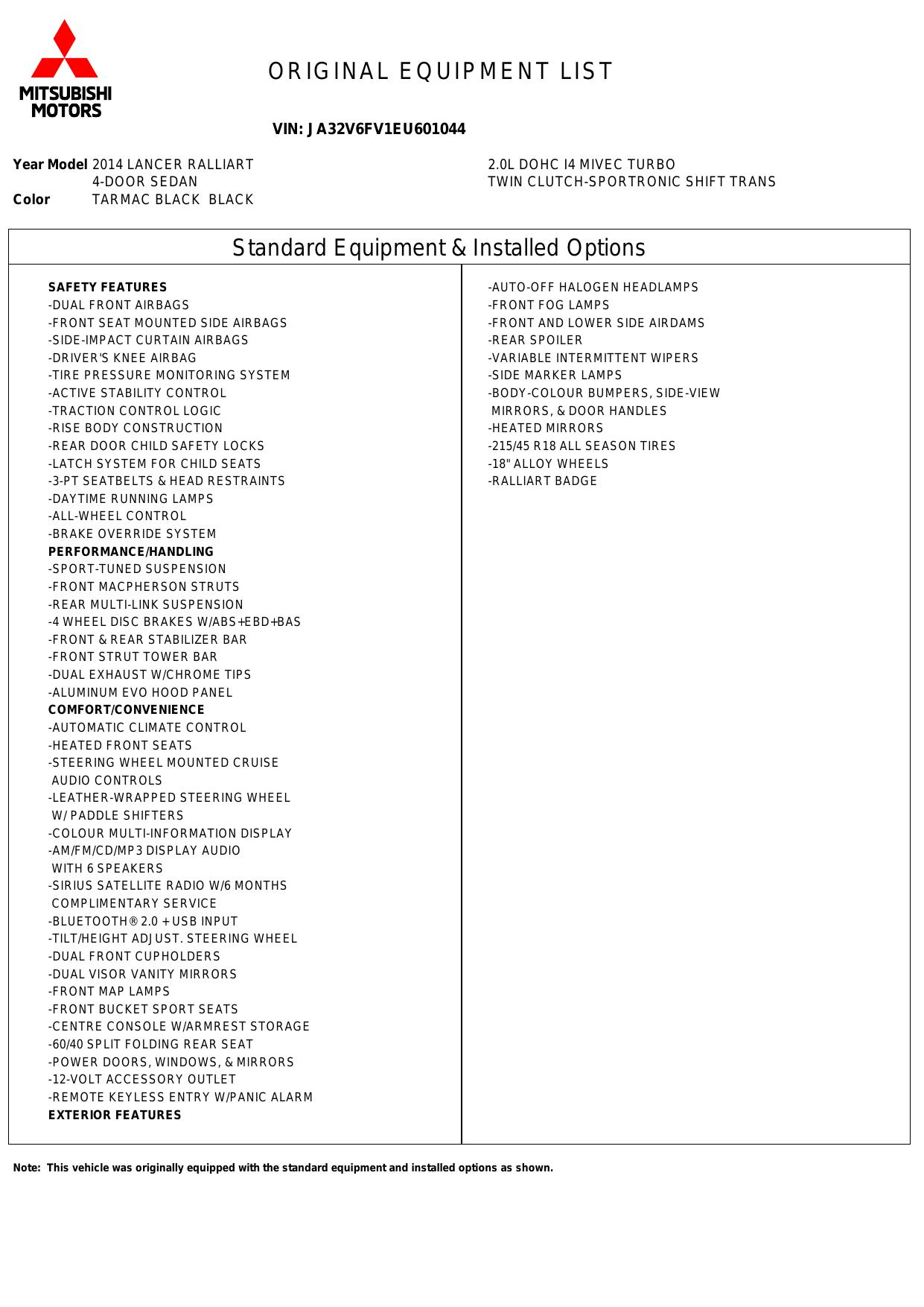 2014 Mitsubishi Lancer 4dr Sdn Tc Sst Ralliart Awd