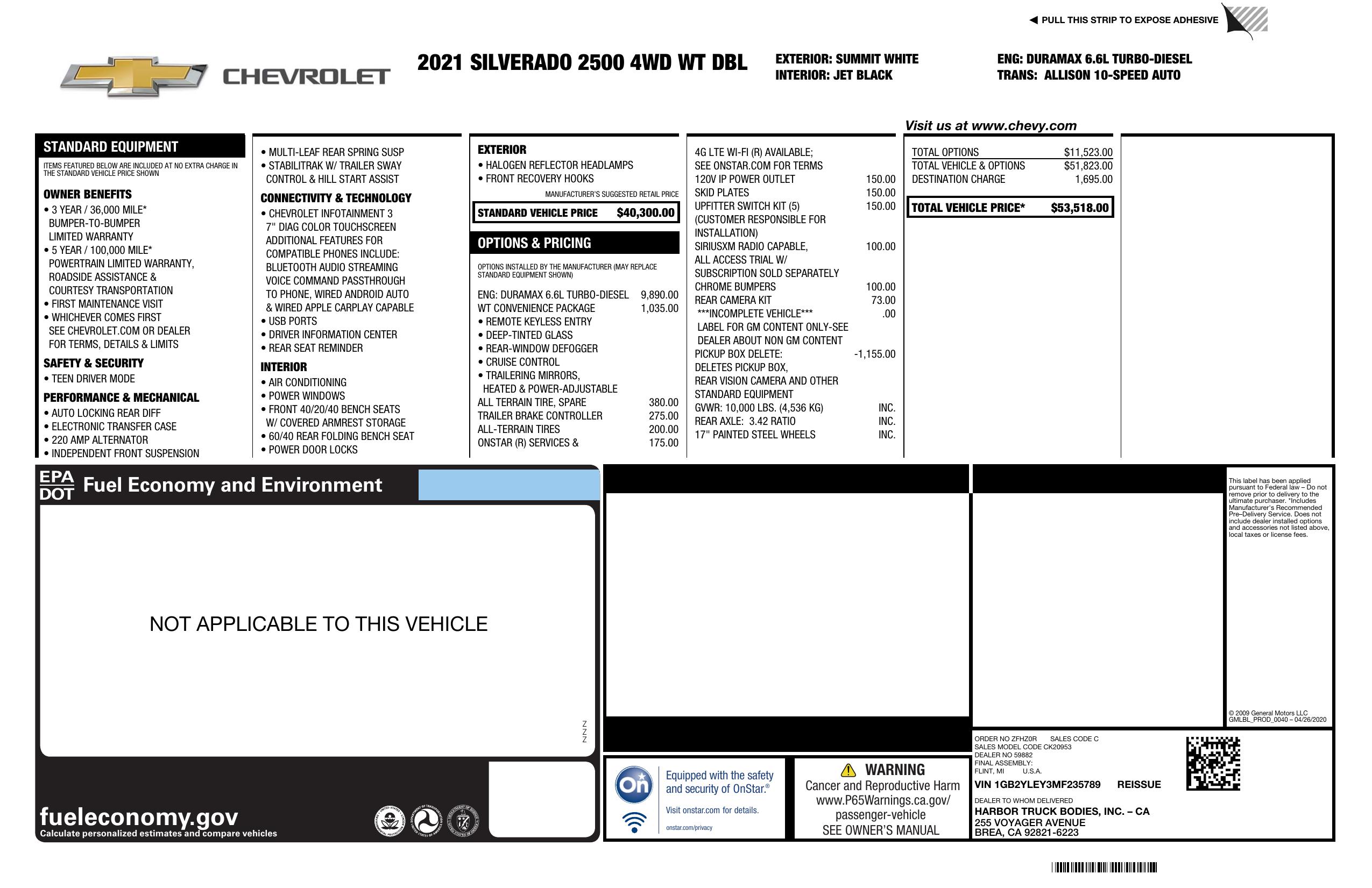 2021 Chevrolet Silverado 2500 Hd 4 Wd Double Cab 162" Work Truck