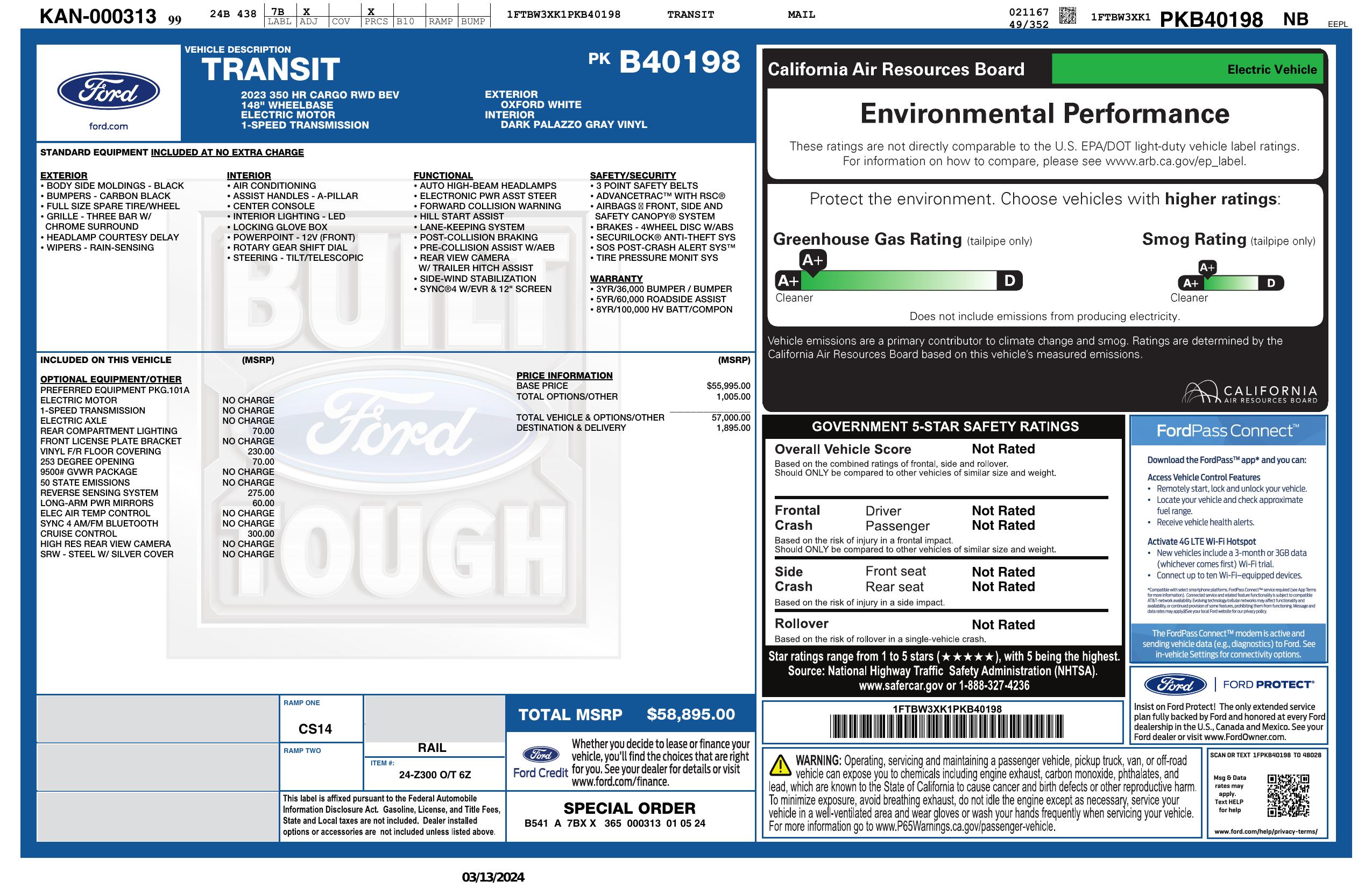 2023 Ford E Transit Cargo Van T 350 148" El Hi Rf 9500 Gvwr Rwd